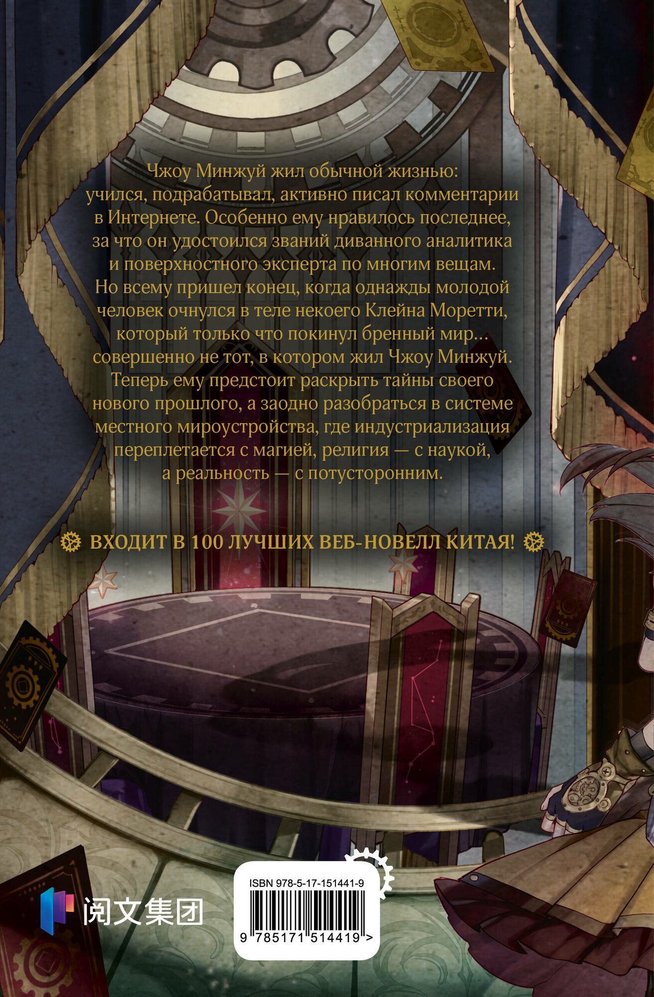 Чжоу Минжуй жил обычной жизнью: учился, подрабатывал, активно писал комментарии в Интернете. Особенно ему нравилось последнее, за что он удостоился званий диванного аналитика и поверхностного эксперта по многим вещам. Но всему пришел конец, когда однажды молодой человек очнулся в теле некоего Клейна Моретти, который только что покинул бренный мир… совершенно не тот, в котором жил Чжоу Минжуй. Теперь ему предстоит раскрыть тайны своего нового прошлого, а заодно разобраться в системе местного мироустройства, где индустриализация переплетается с магией, религия — с наукой, а реальность — с потусторонним.
