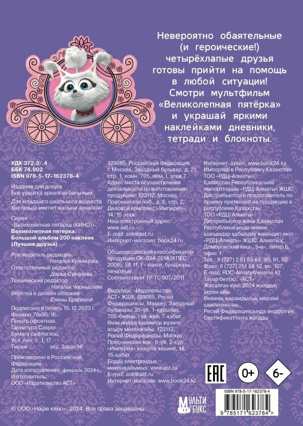 Великолепная пятерка. Большой альбом 200 наклеек (Лучшие друзья) (Кузнецова Н.); ООО "Издательство Астрель", 2024