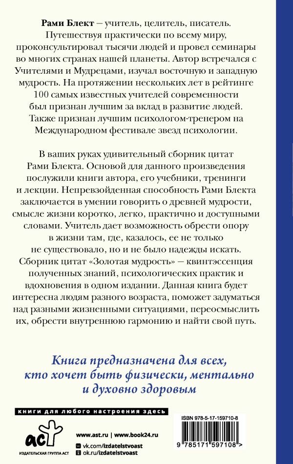 Золотая мудрость. Цитаты о жизни здоровье гармонии (Блект Рами); ООО "Издательство Астрель", 2024