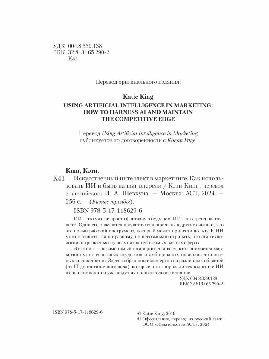 Искусственный интеллект в маркетинге. Как использовать ИИ и быть на шаг впереди (Кэти Кинг); Издательство АСТ, 2019