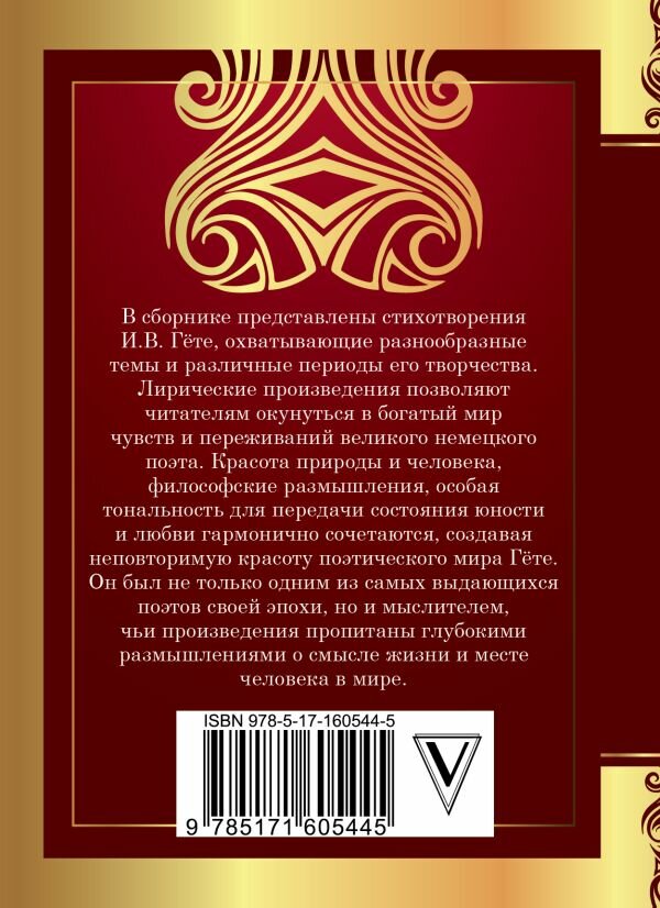 В сборнике представлены стихотворения И.В. Гёте, охватывающие разнообразные темы и различные периоды его творчества. Лирические произведения позволяют читателям окунуться в богатый мир чувств и переживаний великого немецкого поэта. Красота природы и человека, философские размышления, особая тональность для передачи состояния юности и любви гармонично сочетаются, создавая неповторимую красоту поэтического мира Гёте. Он был не только одним из самых выдающихся поэтов своей эпохи, но и мыслителем, чьи произведения пропитаны глубокими размышлениями о смысле жизни и месте человека в мире.