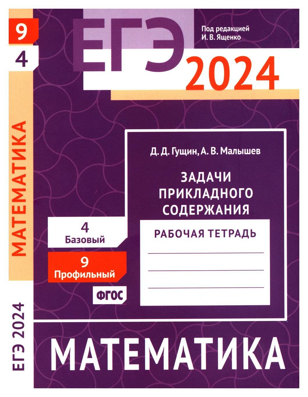 ЕГЭ 2024. Математика. Задачи прикладного содержания. Задача 9 (профильный уровень). Задача 4 (базовый уровень). Рабочая тетрадь (Гущин Дмитрий Дмитриевич, Малышев Алексей Владимирович); МЦНМО, 2024