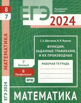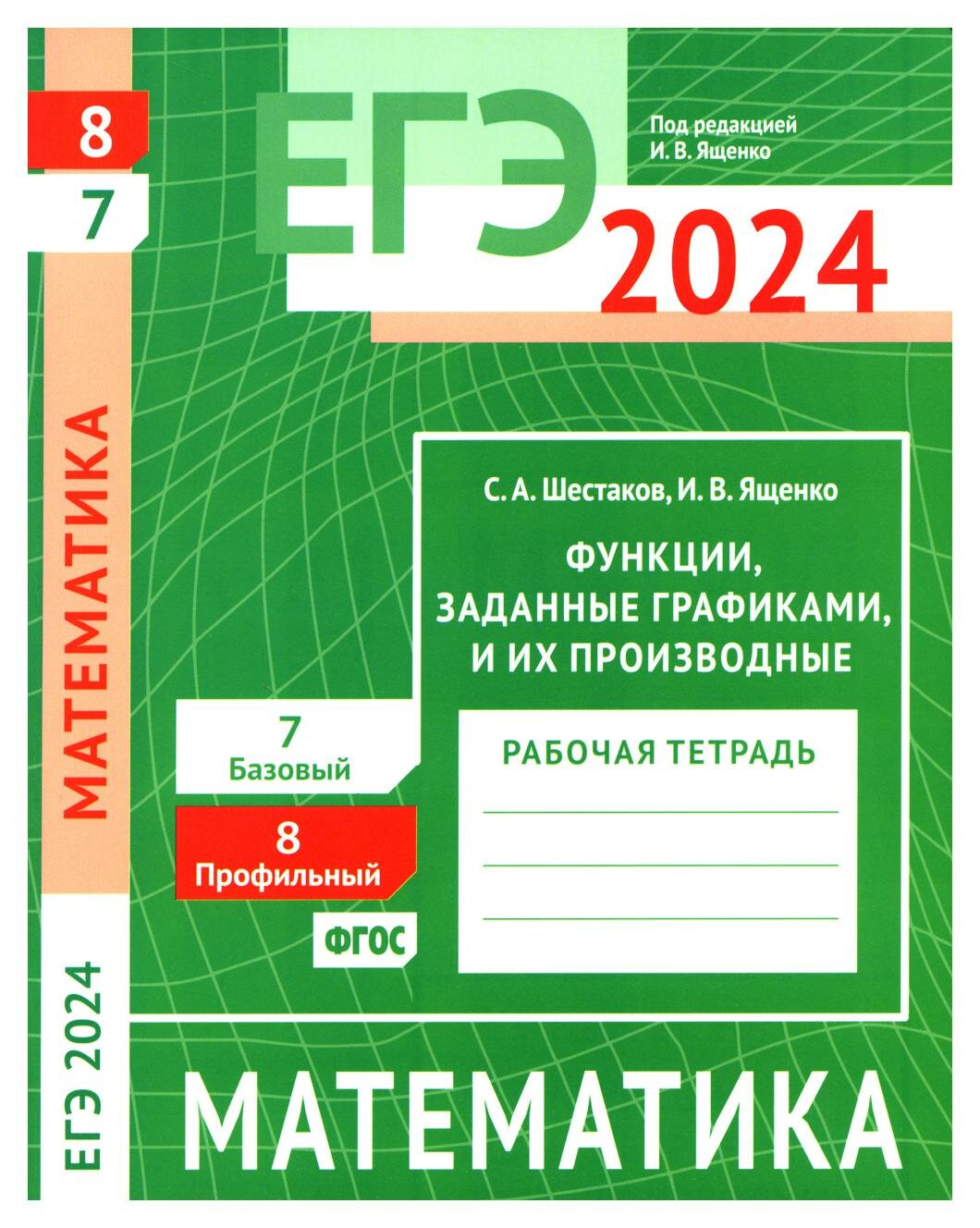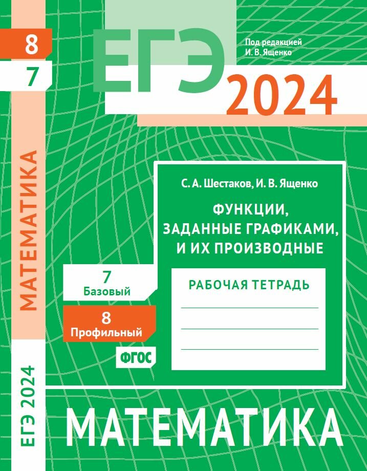 ЕГЭ 2024. Математика. Функции заданные графиками и их производные. Задача 8 (профильный уровень). Задача 7 (базовый уровень). Рабочая тетрадь (Шестаков Сергей Алексеевич, Ященко Иван Валерьевич); МЦНМО, 2024