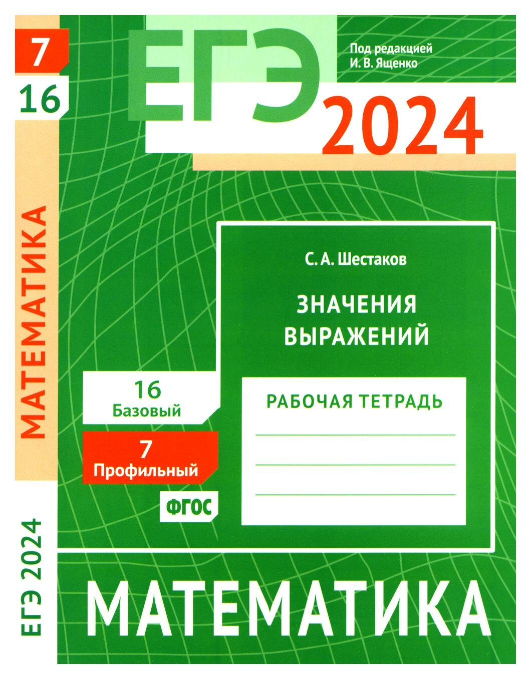 ЕГЭ 2024. Математика. Значения выражений. Задача 7 (профильный уровень). Задача 16 (базовый уровень). Рабочая тетрадь (Шестаков Сергей Алексеевич); МЦНМО, 2024