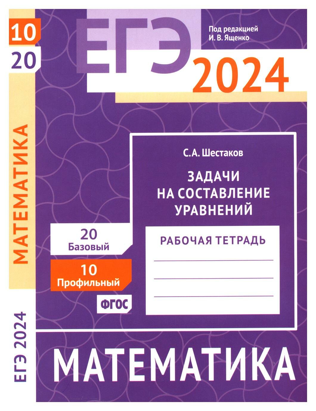 ЕГЭ 2024. Математика. Задачи на составление уравнений. Задача 10 (профильный уровень). Задача 20 (базовый уровень). Рабочая тетрадь (Шестаков Сергей Алексеевич); МЦНМО, 2024