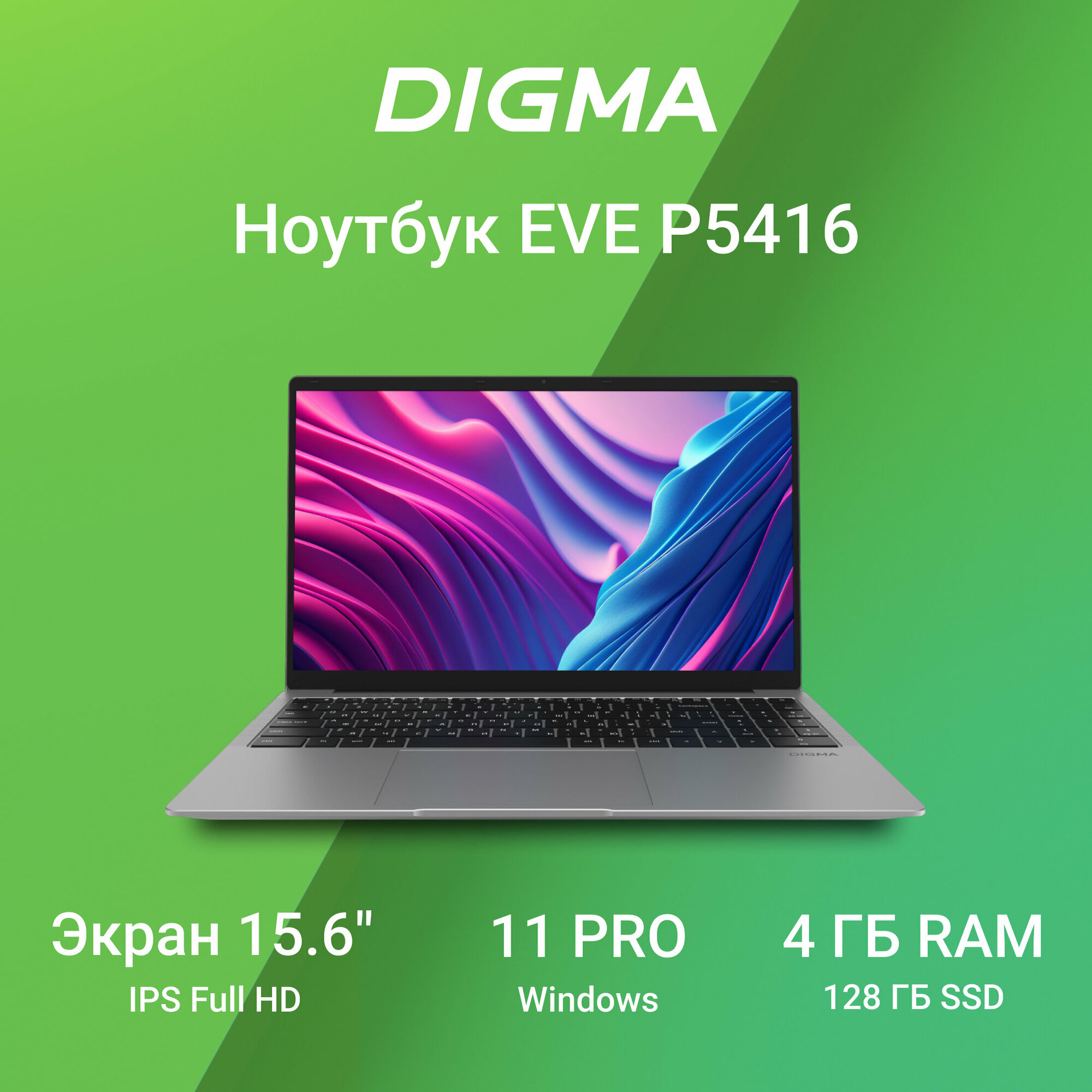 Ноутбук Digma EVE P5416 15.6" 1920x1080 Intel Pentium-N5030 SSD 128 Gb 4Gb Bluetooth 5.0 Intel UHD Graphics 605 серебристый Windows 11 Professional DN15N5-4BXW01