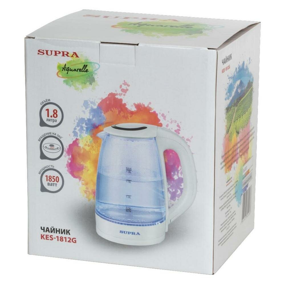 Чайник электрический Supra 1850 Вт белый 1.8 л стекло