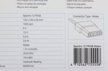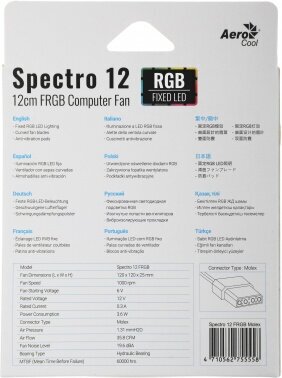 120-миллиметровый вентилятор с разъемом Molex оснащен стильной фиксированной светодиодной RGB подсветкой, придающей особую привлекательность вашему ПК. Полупрозрачные лопасти вентилятора позволяют в полной мере оценить красоту RGB освещения. Изогнутые лопасти вентилятора обеспечивают максимальную эффективность охлаждения и минимальное воздушное сопротивление.Подсветка Fixed RGB придаст вашей системе неповторимый вид RGB-светодиоды в центральной части вентилятора создают стильные и яркие световые эффекты Полупрозрачные лопасти вентилятора позволяют в полной мере оценить красоту RGB освещения Изогнутые лопасти вентилятора обеспечивают максимальную эффективность охлаждения Противовибрационные прокладки поглощают и подавляют вибрацию Поставляется с разъемом Molex