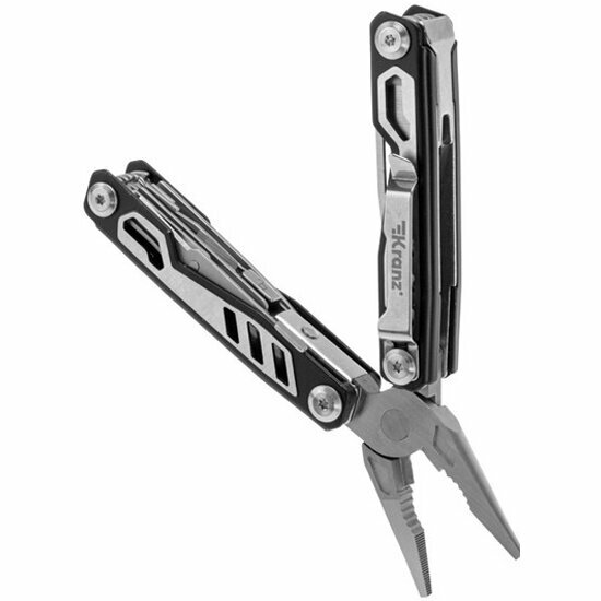 | Функции | Большая отвертка, Инструмент для зачистки проводов, Крестовая отвертка, Кусачки, Маленькая отвертка, Нож, Ножницы, Открывалка для бутылок, Пила, Плоскогубцы |