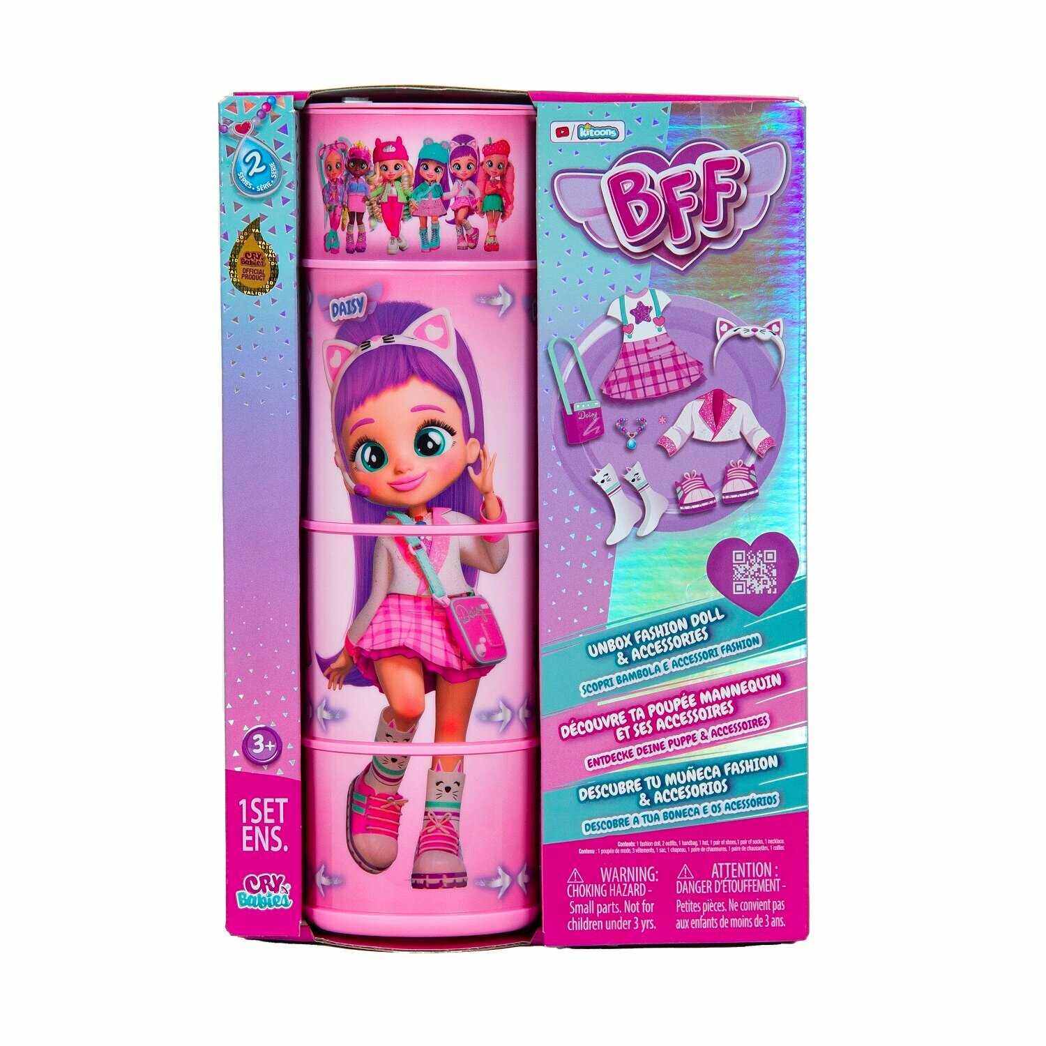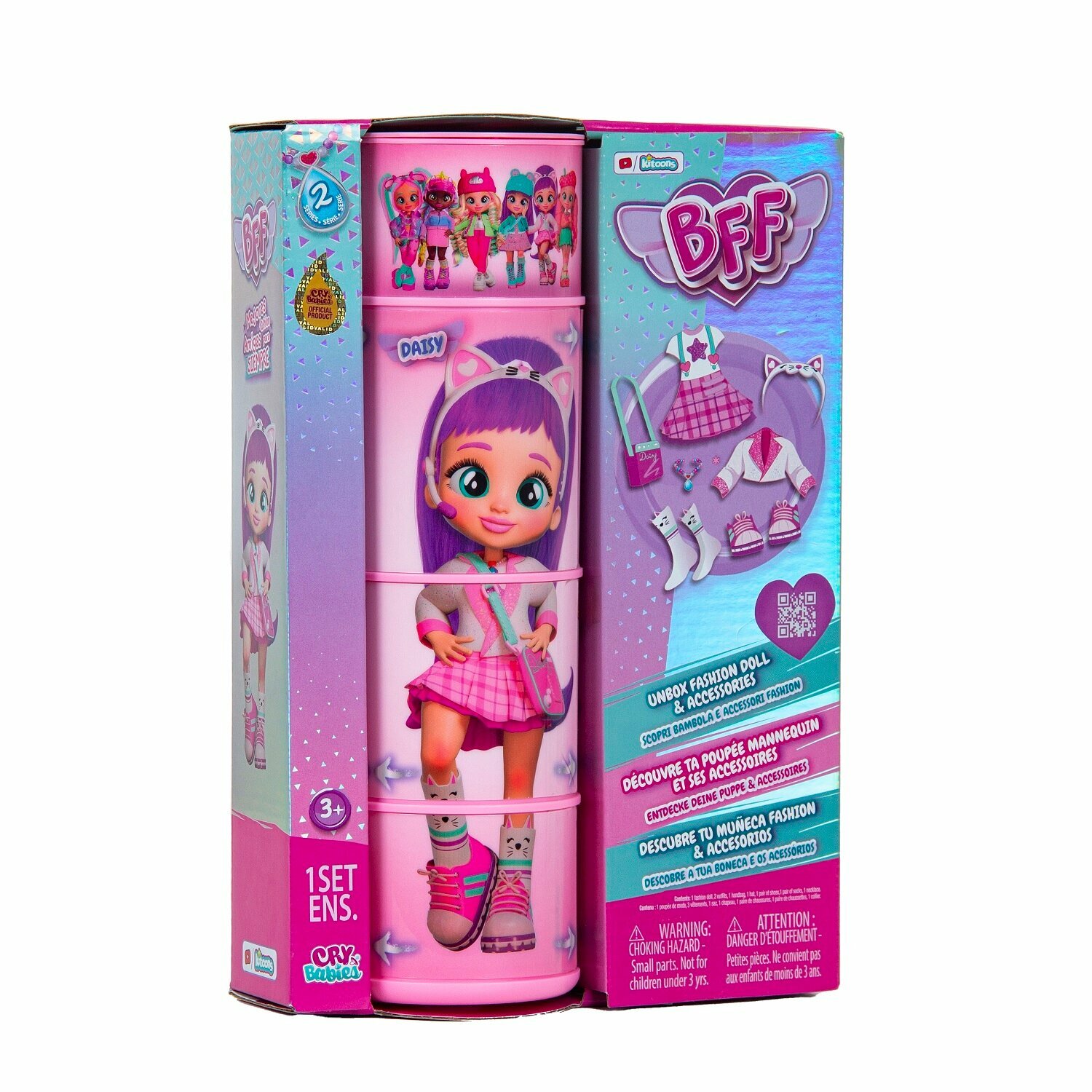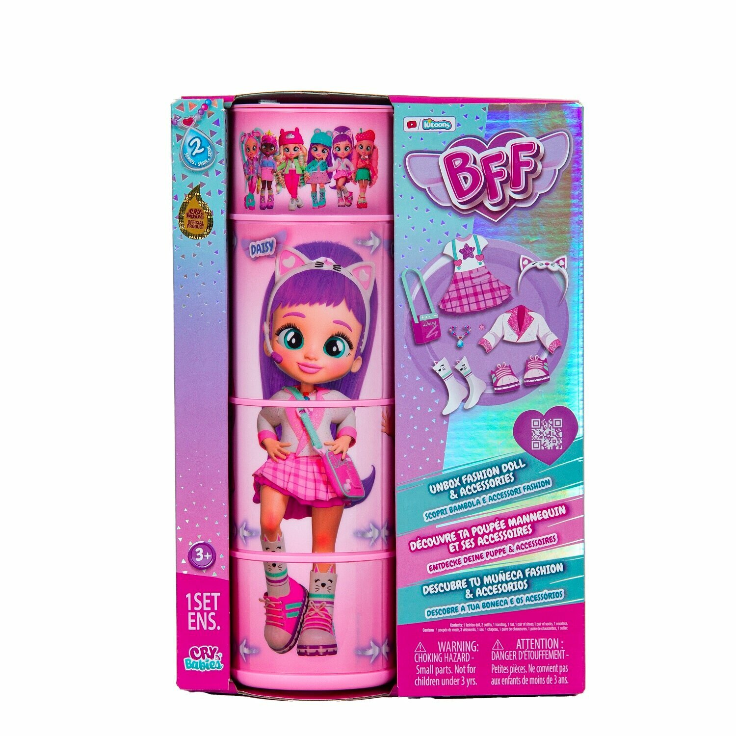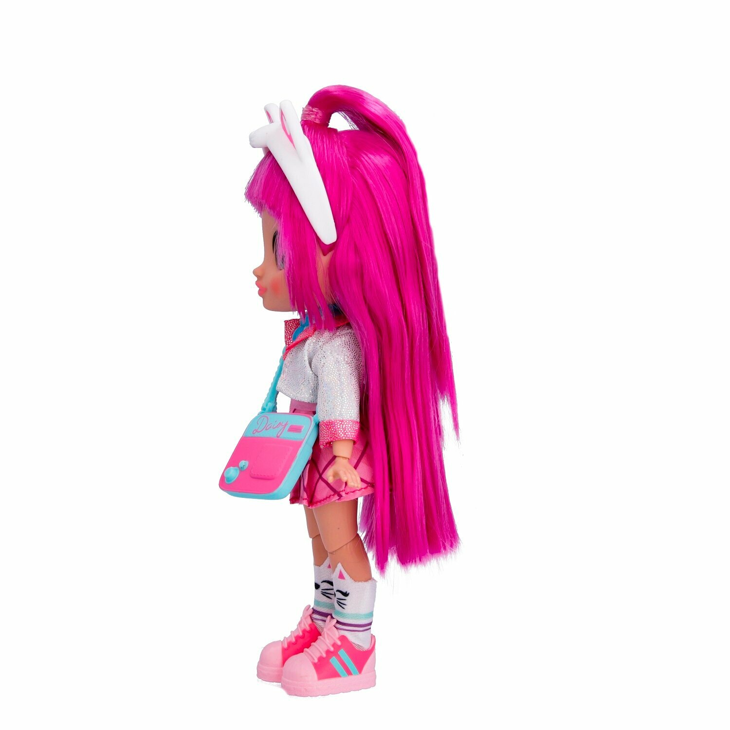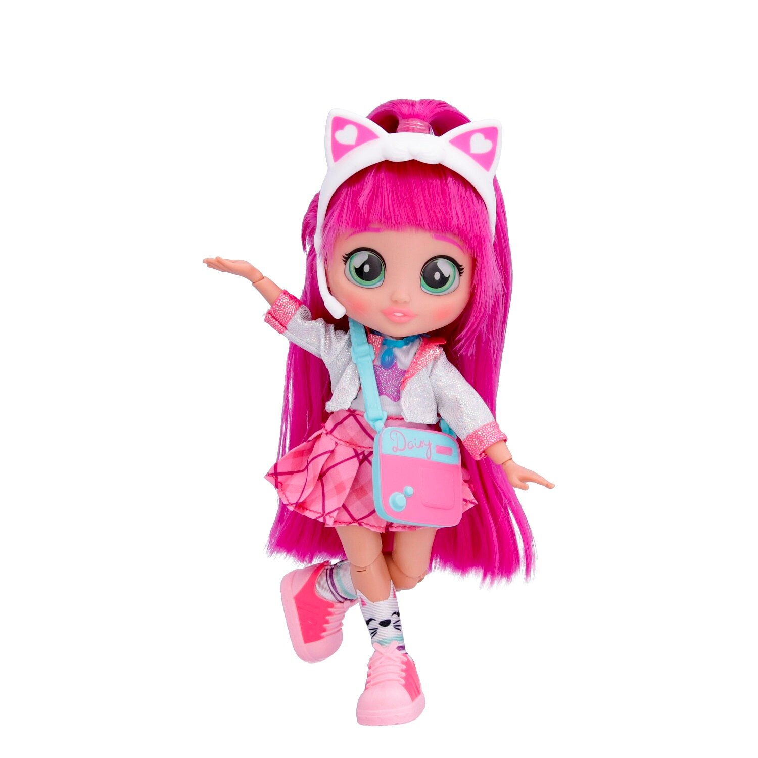 Милые девочки Край Бебис повзрослели! Теперь они "БФФ - Лучшие друзья навсегда" - коллекционные модные куклы и персонажи одноименного мультсериала! Лучшие друзья приехали в летний лагерь талантов, где активно участвуют в занятиях по искусству, музыке и робототехнике. Но злодейка Шедоу постоянно строит козни против девочек. Что это за стильная девчонка? У Дейзи шелковистые яркие волосы и большие зеленые глаза. Она одета в модный наряд: концертное платье с пиджаком, розовые кеды и милые носочки с котиками. Ее стильный образ можно дополнить именной сумочкой, ободком с ушками котика и особенным волшебным ожерельем БФФ. Дейзи обожает петь, и у нее это отлично получается! Дома она устраивает репетиции на своей импровизированной сцене. Ей нравится петь и для других, поэтому она часто устраивает концерты для своих подружек БФФ. Смогут ли БФФ объединиться и остановить Шедоу силой своей дружбы?БФФ - дружба сильнее тьмы! Дейзи БФФ - кукла высотой 20 см с длинными мягкими прошитыми волосами, яркой одеждой, с подвижными ручками и ножками (11 точек артикуляции). В наборе модная кукла, комплект одежды, сумка, головной убор, пара обуви, ожерелье, коллекционный буклет. Игрушка изготовлена из полимерных и текстильных материалов. Товар сертифицирован и безопасен для детского использования. Упаковка: закрытая коробка 18,5 х 6 х 27 см.