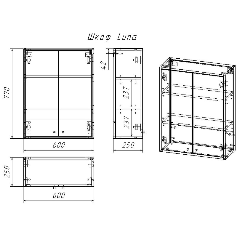 - Размеры (ШхВхГ): 660x770х250 мм.
