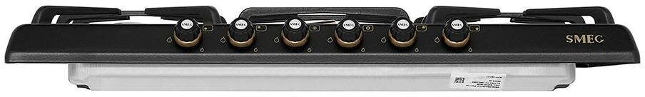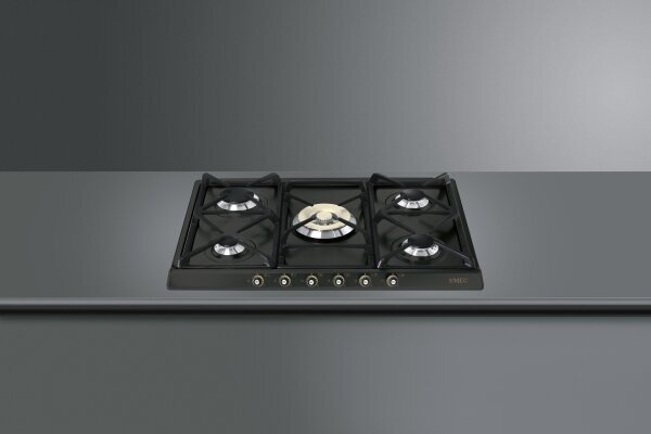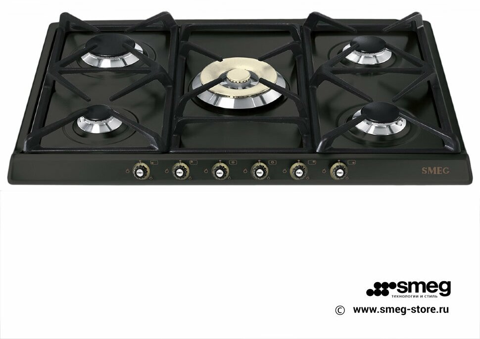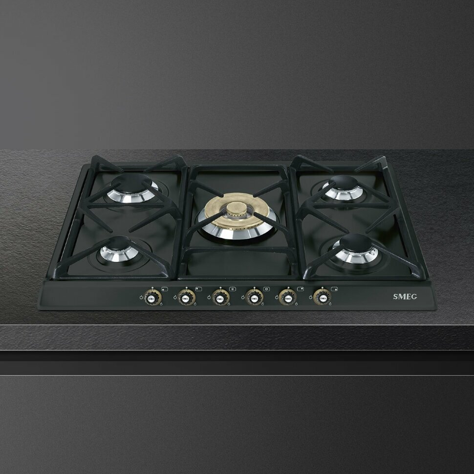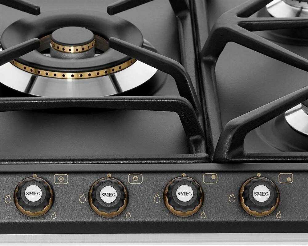 Варочная панель Smeg представлена в классическом дизайне Cortina в цвете «антрацит». Данная модель комплектуется пятью газовыми конфорками разной мощности, в том числе с двойным управлением, что гарантирует комфорт использования. Чугунные решетки отличаются прочностью и выдерживают высокую температуру. Газ-контроль перекрывает подачу газа, если пламя случайно гаснет, что обеспечивает безопасность эксплуатации.
