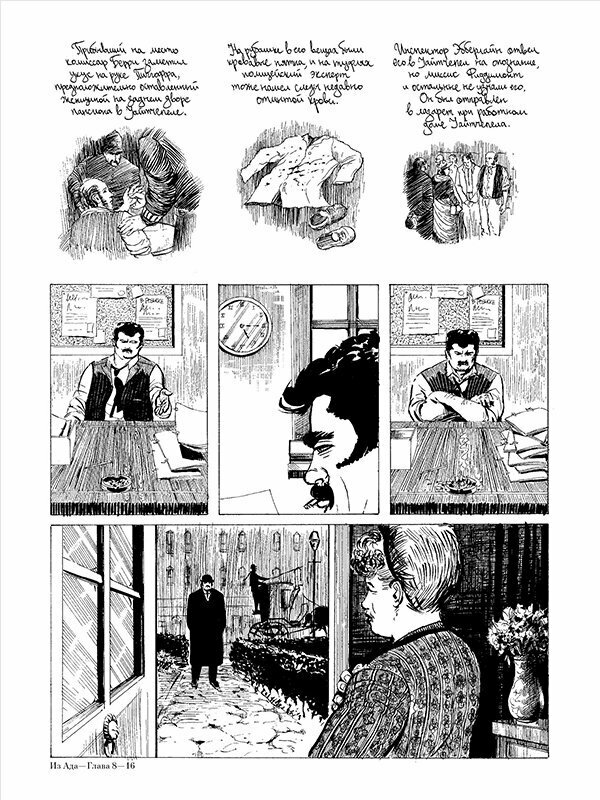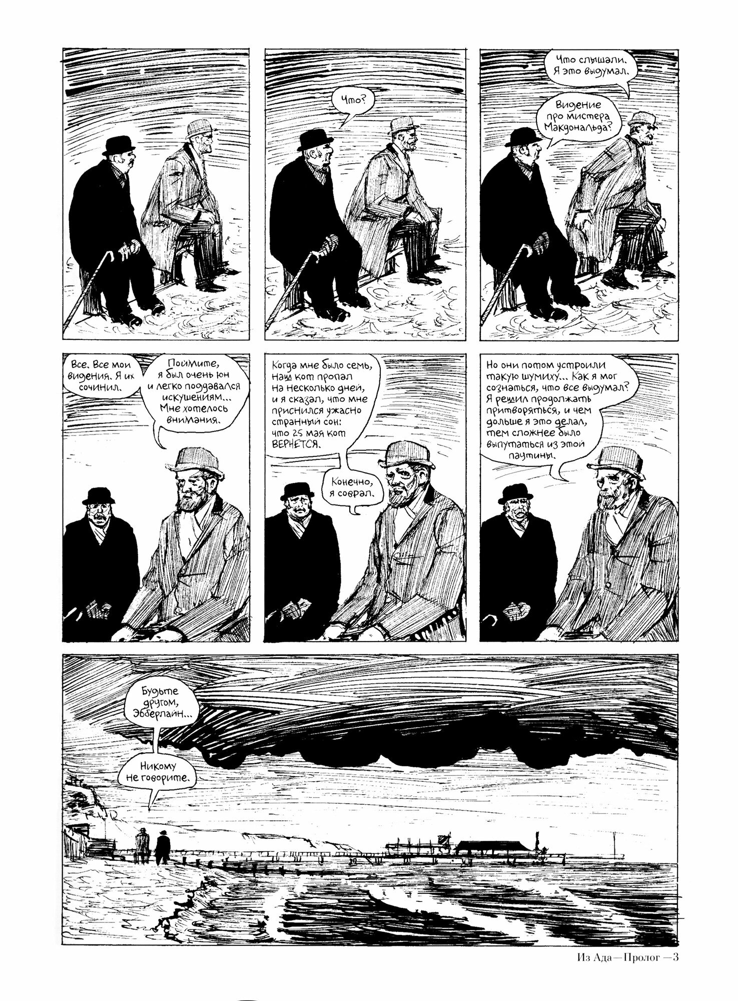 Легендарный сценарист Алан Мур и художник Эдди Кэмпбелл создали одну из самых значительных вещей во всей комикс-культуре. В книге "Из ада" Мур рассказывает историю Джека Потрошителя, самой одиозной фигуры в мире серийных убийств, окруженной множеством мифов и домыслов. Мур с бесконечным изяществом строит вокруг уайтчепелских убийств сложнейшую конструкцию из масонских заговоров, исторических параллелей, мифологических и художественных отсылок – а затем с тем же изяществом разрушает ее, признаваясь, что предложенный им вариант событий вовсе не является истиной в последней инстанции. Как бы то ни было, "Из ада" – впечатляющее полотно жизни низов Лондона конца XIX века и подробнейший экскурс в глубины подсознания безумца, без которого весь двадцатый век был бы иным.