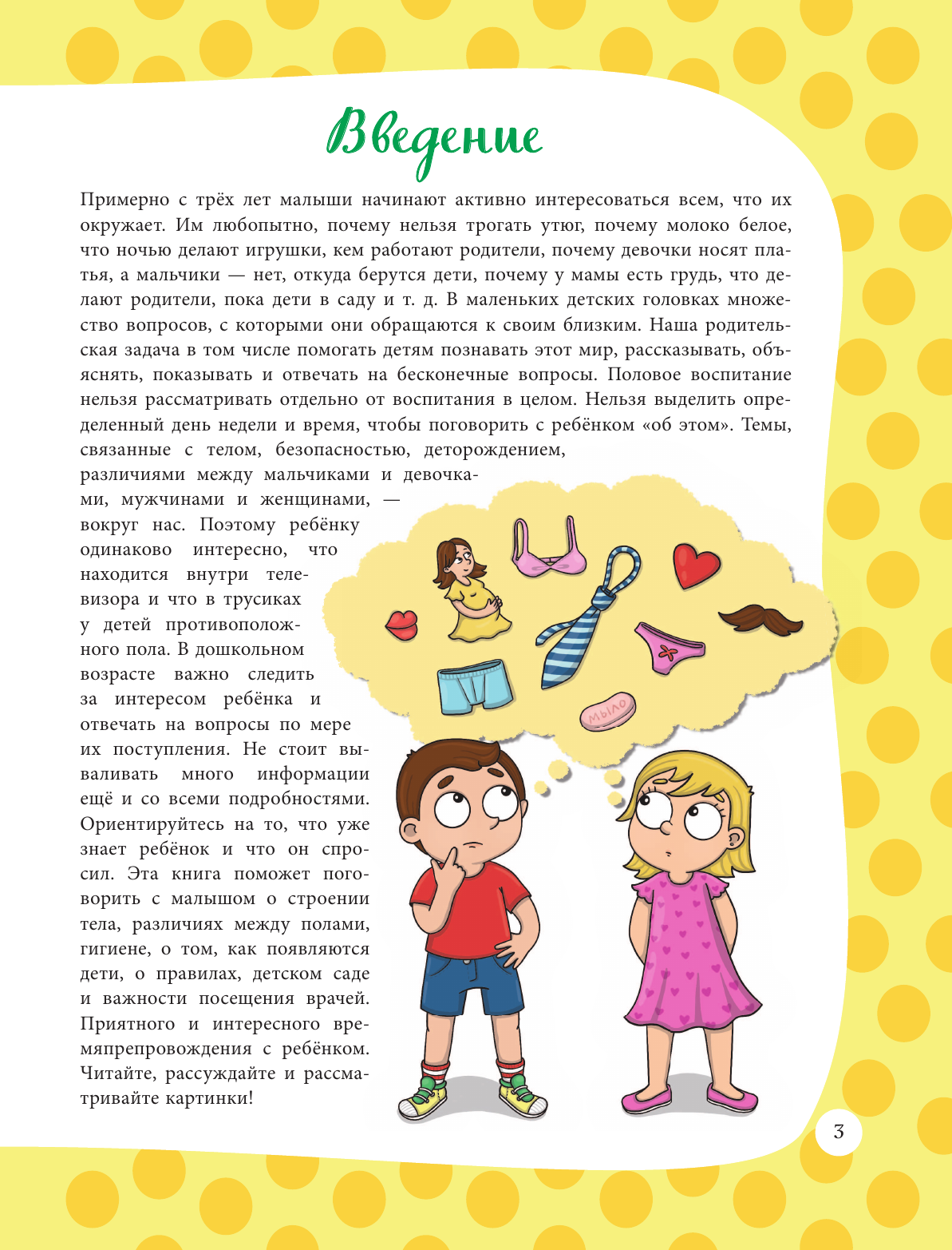 Половое воспитание нельзя рассматривать отдельно от воспитания в целом. Нельзя выделить определенный день недели и время, чтобы поговорить с ребенком «об этом». Темы, связанные с телом, безопасностью, деторождением, различиями между мальчиками, девочками, мужчинами и женщинами — вокруг нас. Поэтому ребенку одинаково интересно, что находится внутри телевизора и что в трусиках у детей противоположного пола.