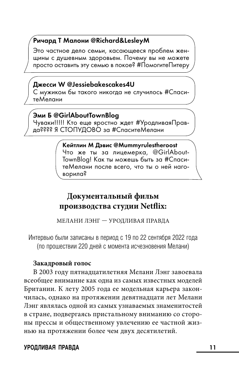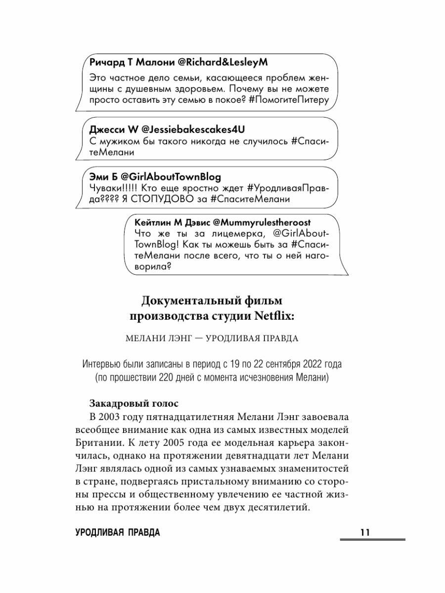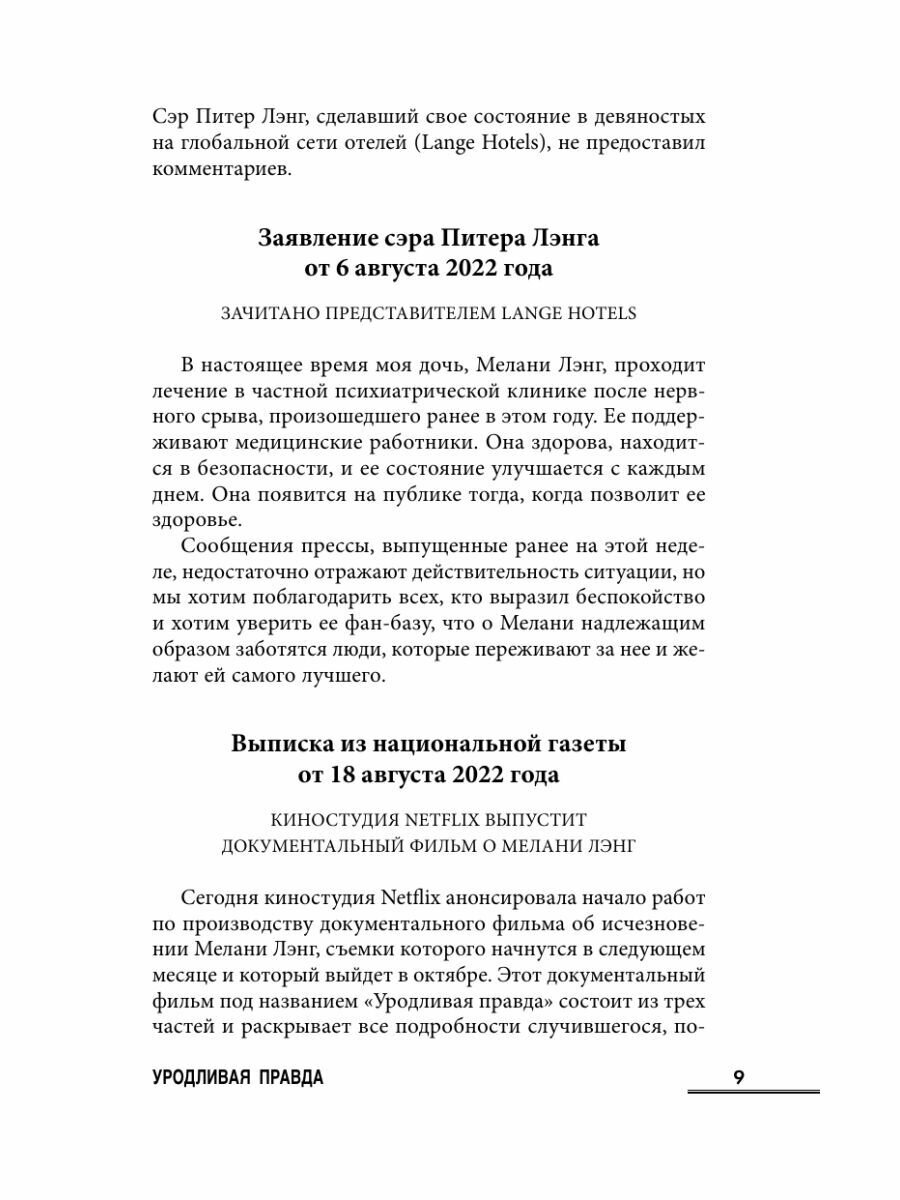 «Уникальный формат этой книги интригует — рассказанная с помощью интервью, стенограмм и дневниковых записей, "Уродливая правда" — это триллер о славе, власти и правде, стоящей за заголовками». — Cosmopolitan