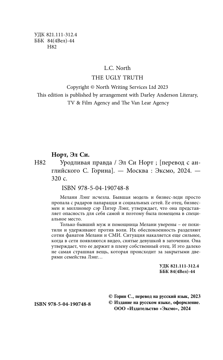 Книга: Уродливая правда (Эл Си Норт); Эксмо, Inspiria, Редакция 1, 2024