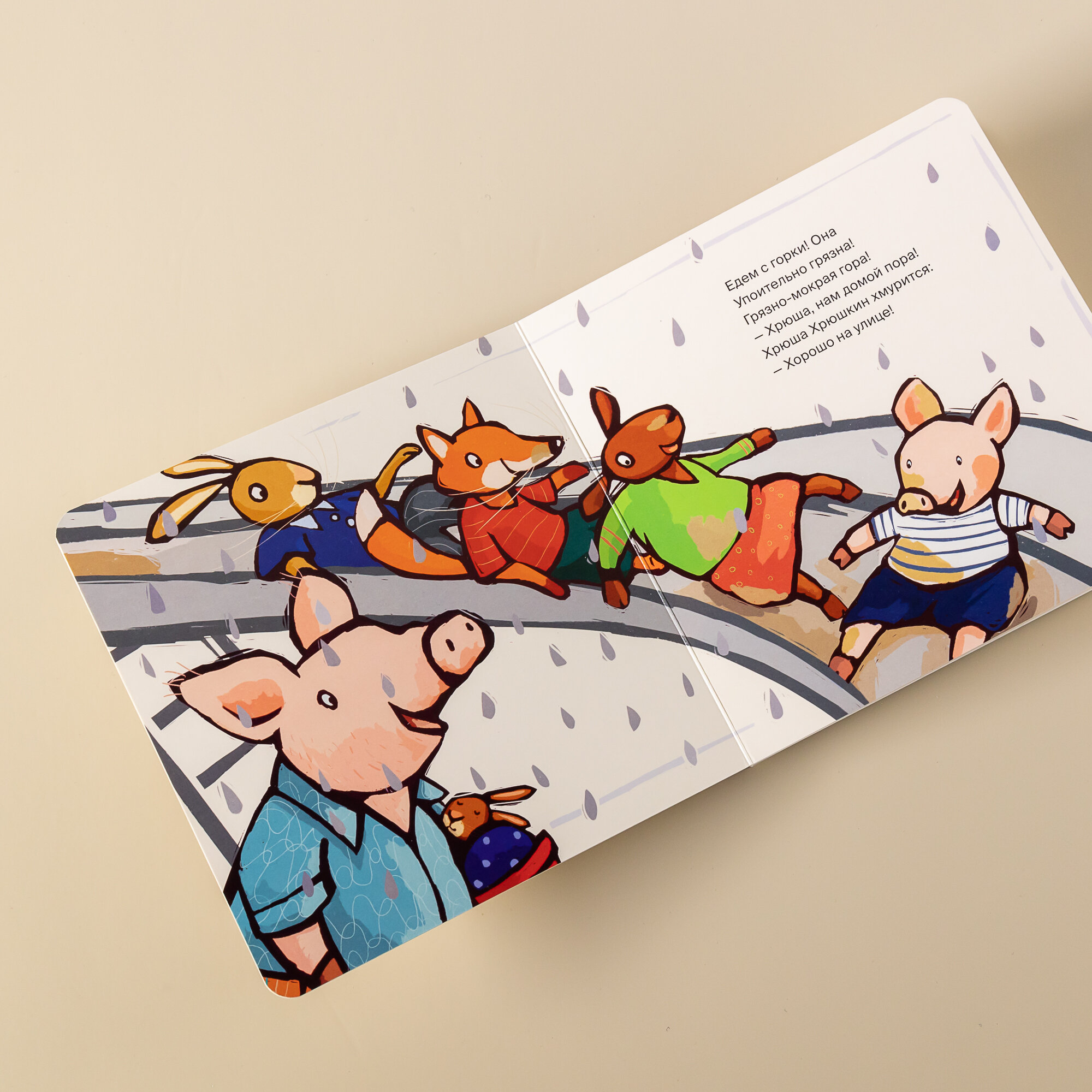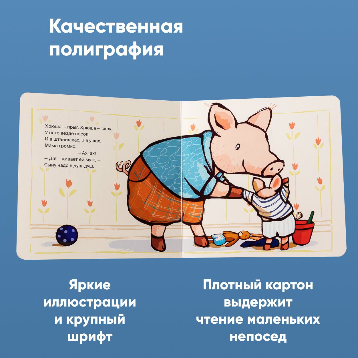 Хрюша Хрюшкин весь день играет во дворе, и даже дождь ему не помеха. Вот только после активных игр он испачкался с ног до головы. Хрюша не хочет купаться — это же так скучно! Сумеет ли папа переубедить его?