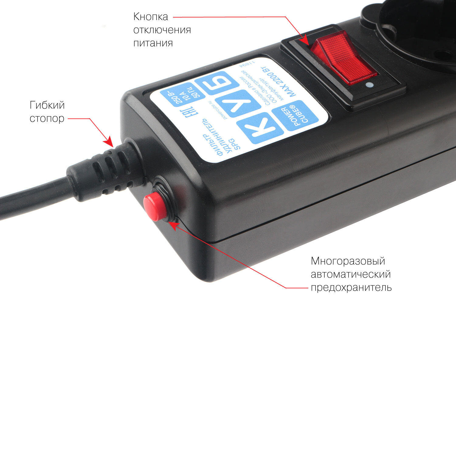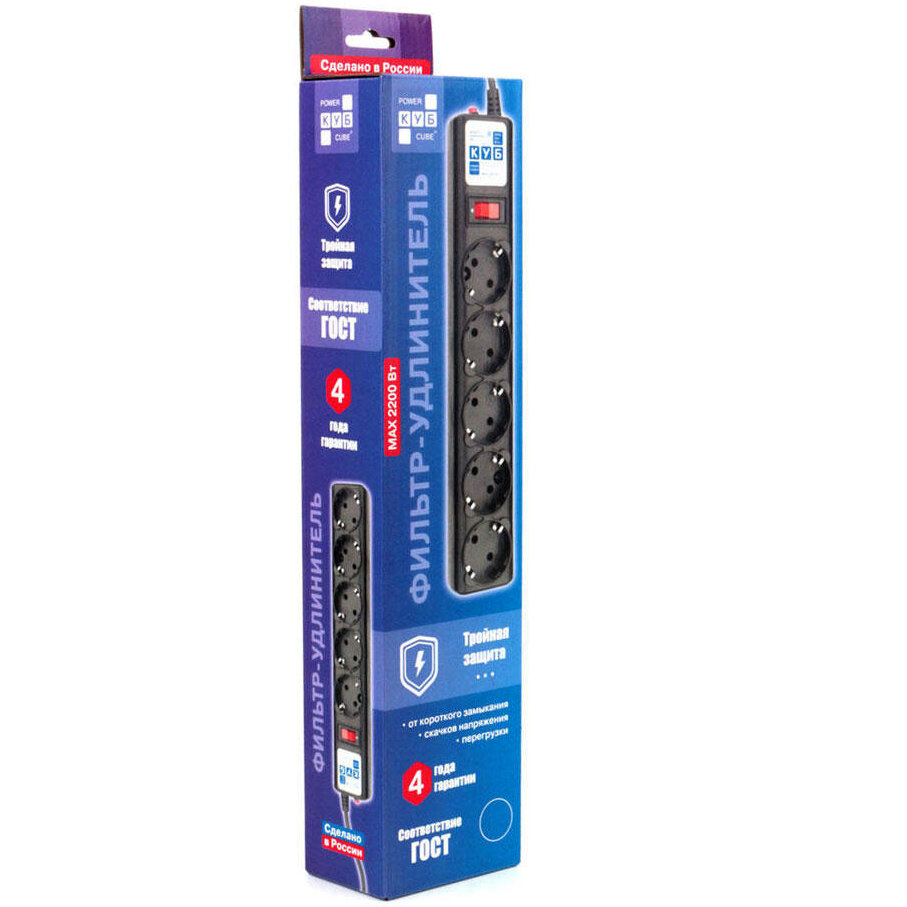 Сетевой фильтр Power Cube 100 м 5 розеток (черный графит) 10А/22кВт SPG5-10M