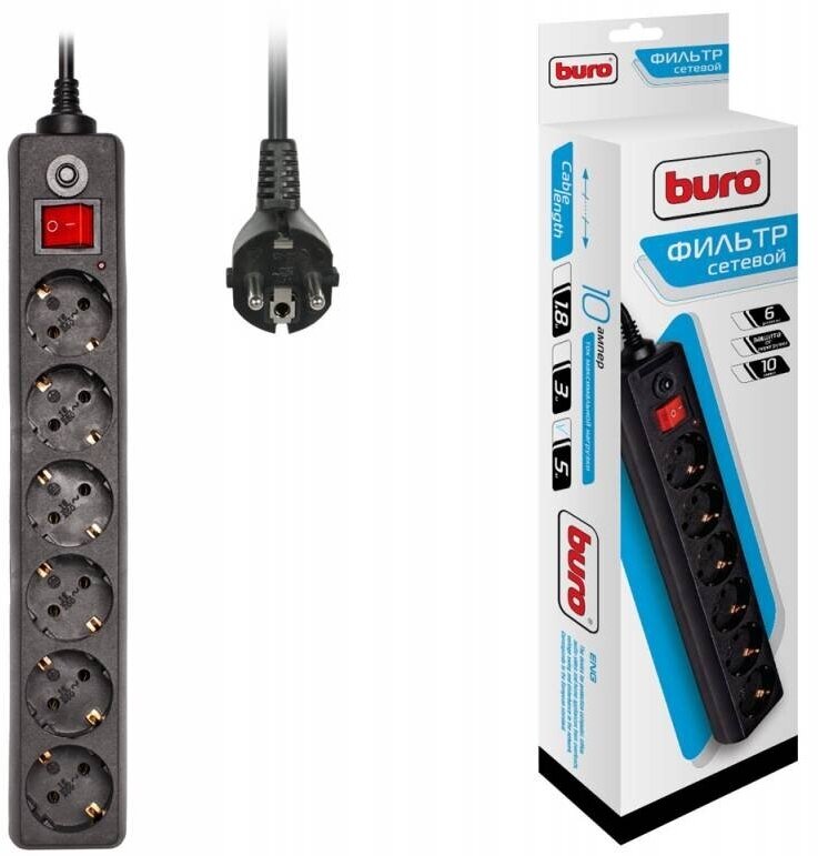 - Сетевой фильтр BURO 600SH-3-B, 3м. Сетевой фильтр BURO 600SH-3-B, 3м, черный