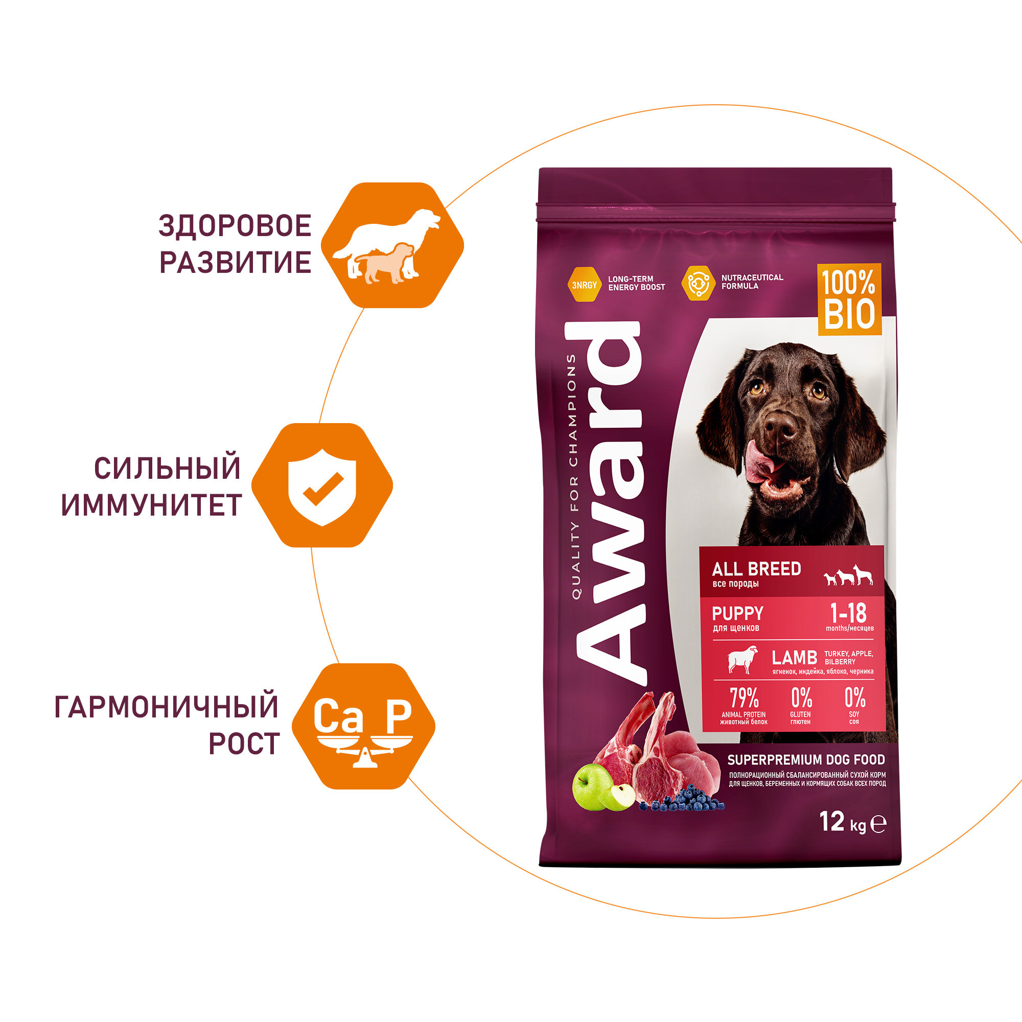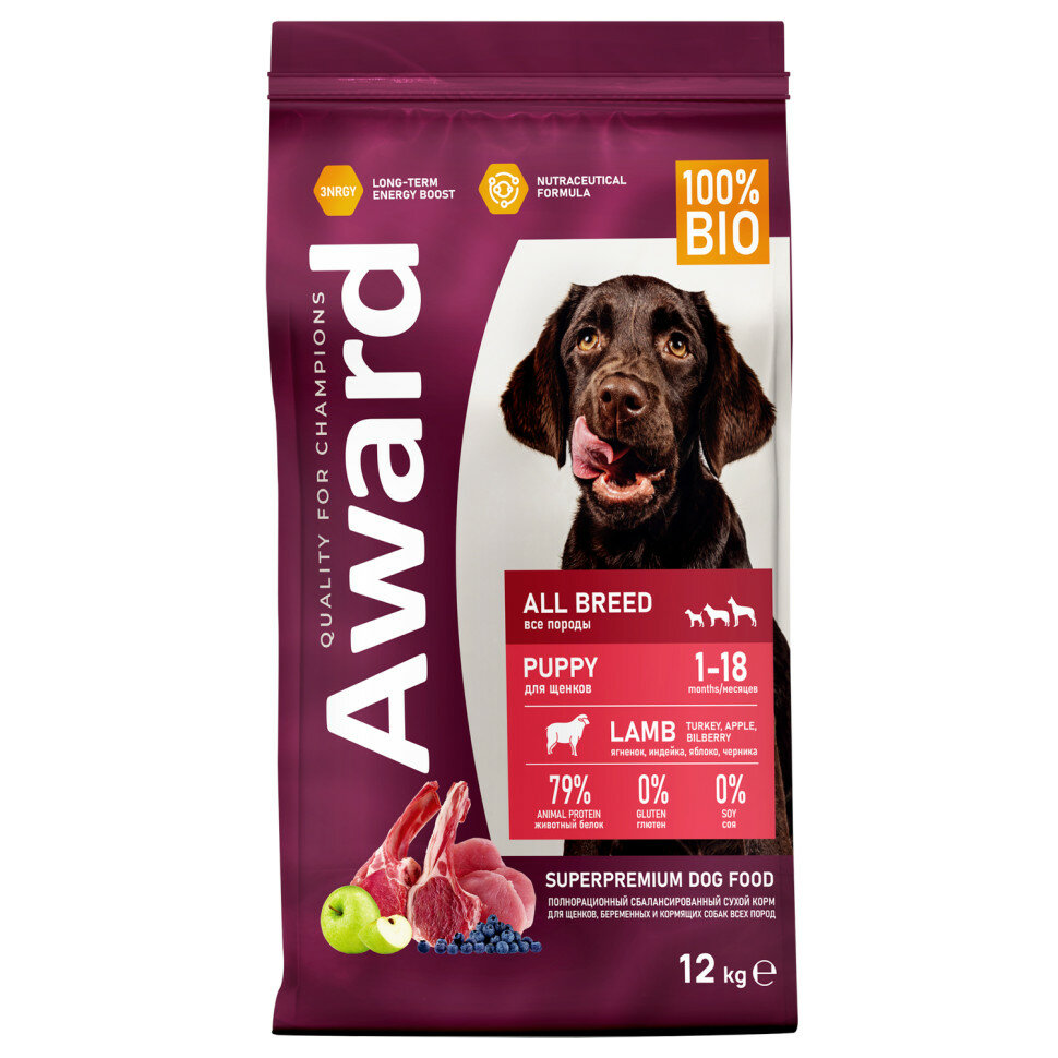 AWARD Puppy All Breed Корм сух.ягненокиндейкаяблокочерника д/щенковбер.и корм.сук всех пор.12кг (7175727)