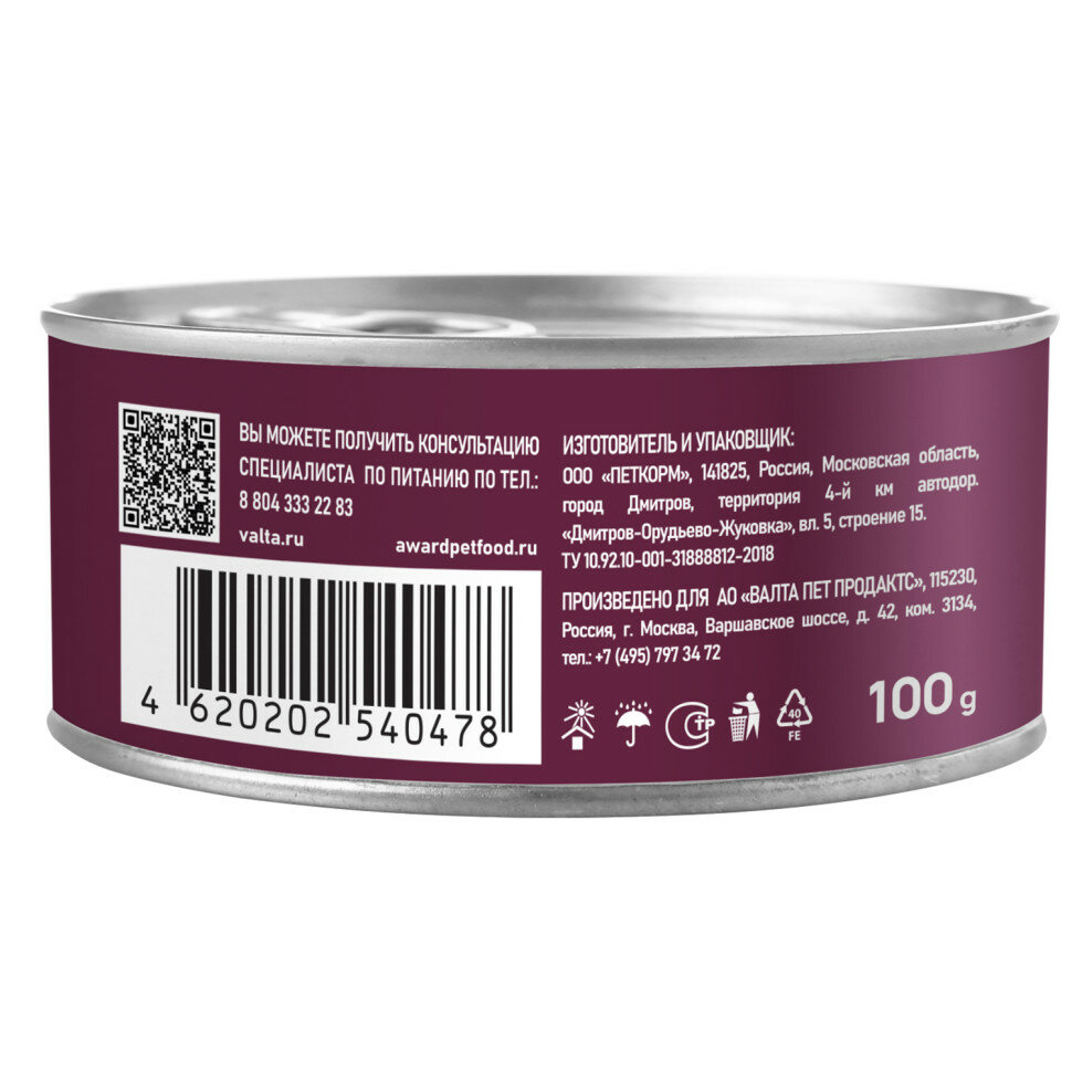 AWARD Adult Корм влаж.паштет из говядины со шпинатом д/кошек конс.100г (2540478)