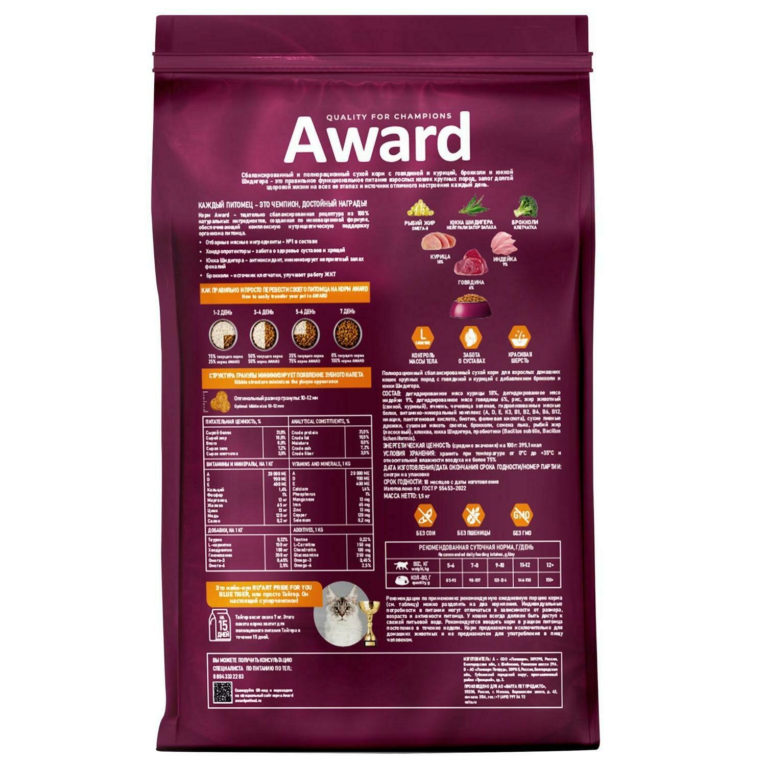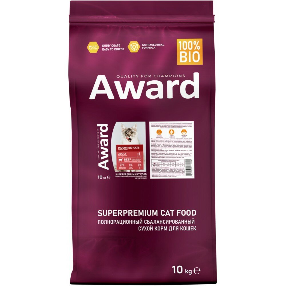 AWARD Indoor Big Cats Adult Корм сух.говядкурицаброкколи д/домашних кошек круп.пор.15кг (7173709)