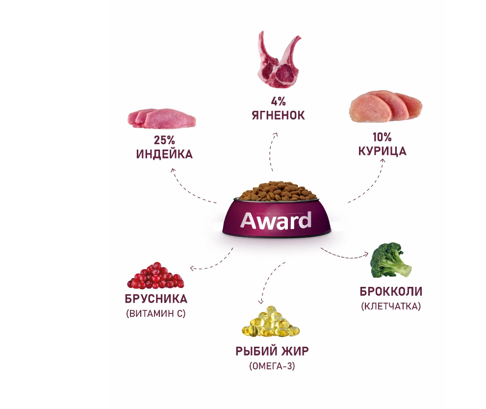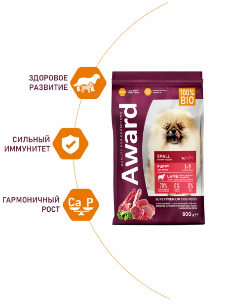 AWARD Puppy Small Корм сух.ягненокиндейкаброкколибрусника д/щенковбер.и корм.сук мелк.пор.15кг (7173303)