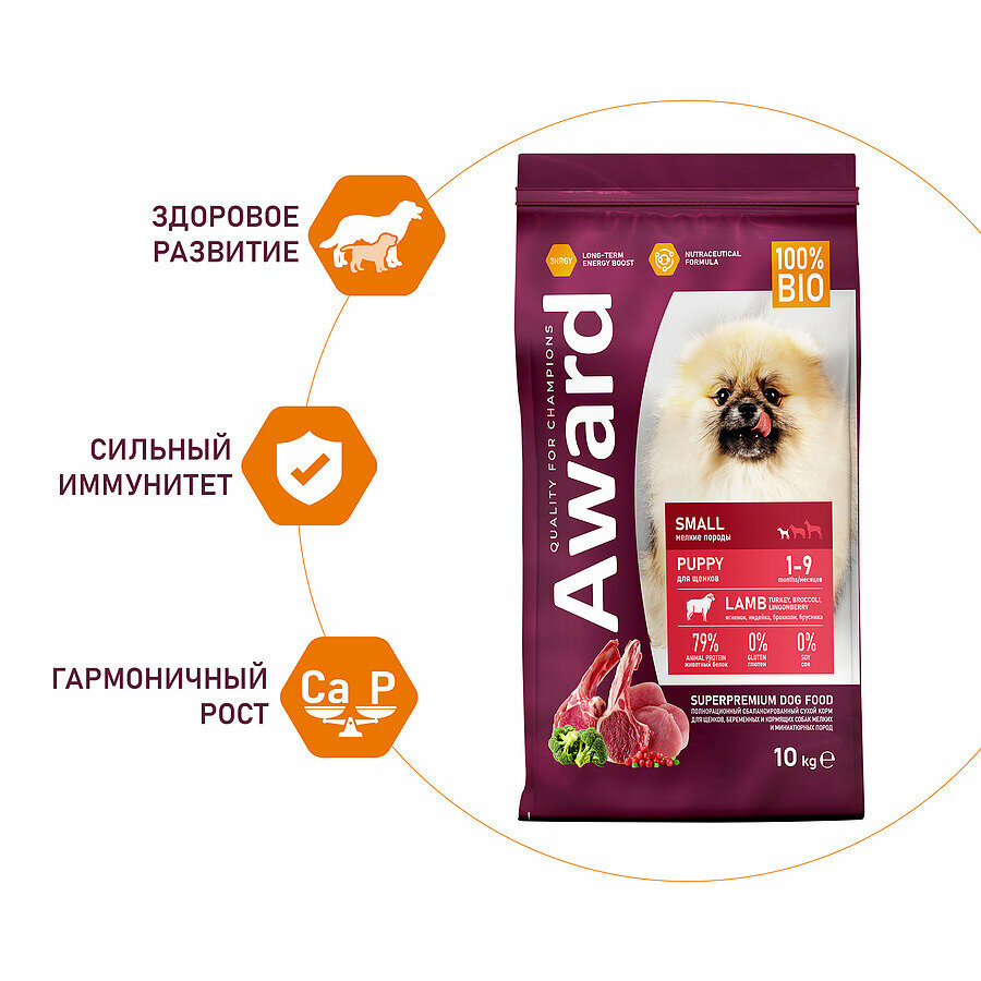 AWARD Puppy Small Корм сух.ягненокиндейкаброкколибрусника д/щенковбер.и корм.сук мелких пор.10кг (7173310)