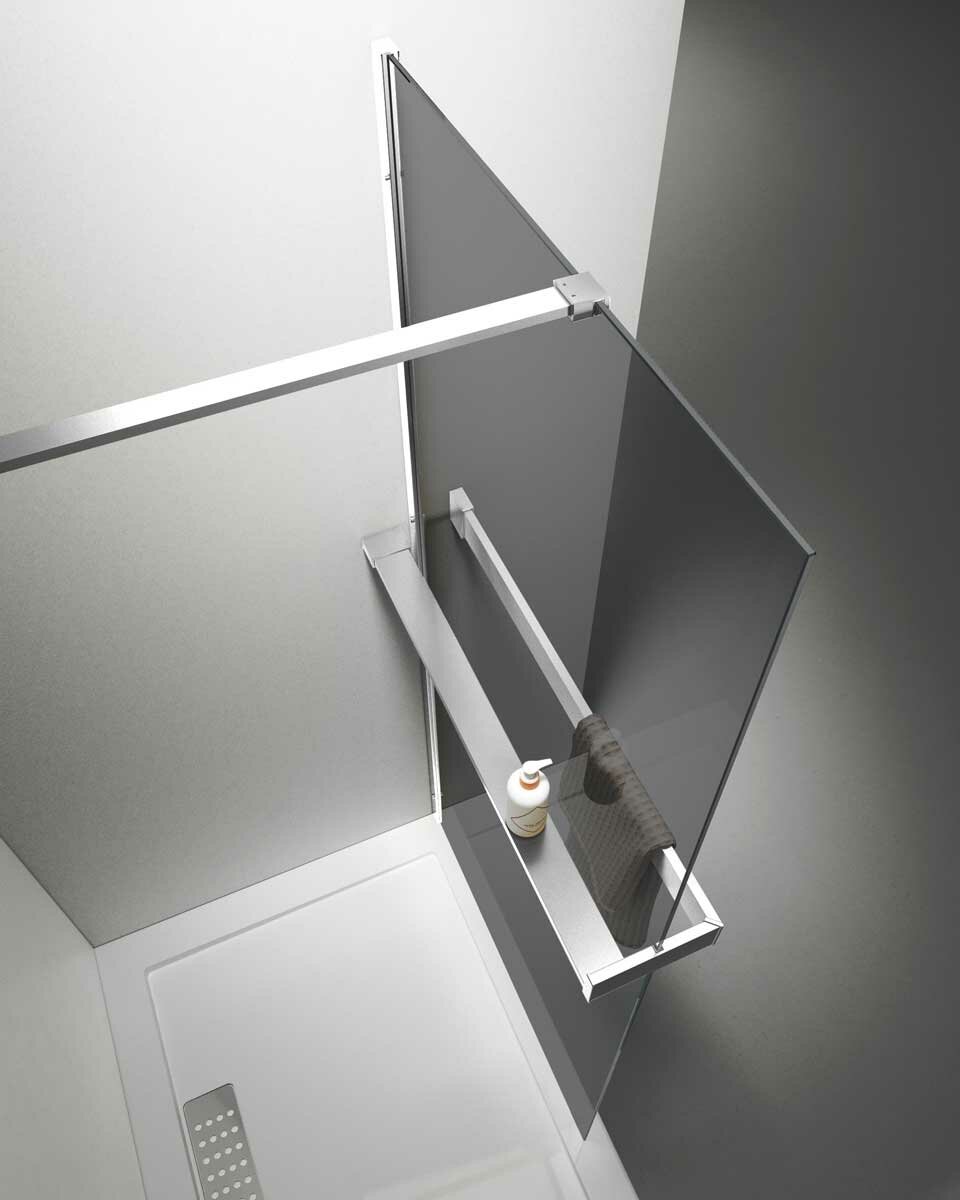 Материал профиля: алюминий. Универсальная ориентация: установка справа или слева. Конструкция: неподвижное стекло с профилем и держателем. Максимальная длина держателя кронштейна 1200мм. В комплекте поставки: душевая перегородка, держатель для полотенец и полка из нержавеющей стали.