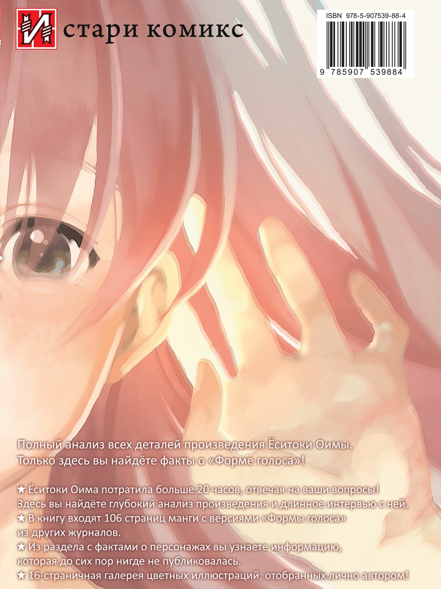 Полный анализ всех деталей произведения Ёситоки Оимы. Только здесь вы найдёте факты о «Форме голоса»!- Ёситоки Оима потратила больше 20 часов, отвечая на ваши вопросы! Здесь вы найдёте глубокий анализ произведения и длинное интервью с ней.- В книгу входят 106 страниц манги с версиями «Формы голоса» из других журналов.- Из раздела с фактами о персонажах вы узнаете информацию, которая до сих пор нигде не публиковалась.- 16-страничная галерея цветных иллюстраций, отобранных лично автором!