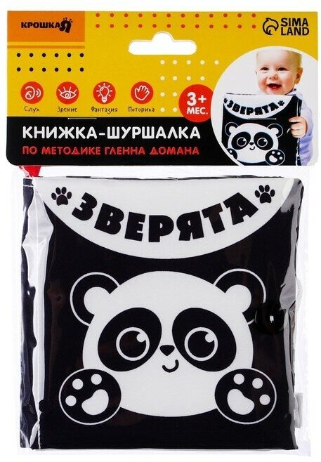 Мягкая книжка-шуршалка по методике Домана "Зверята", развивающая игрушка для малышей.