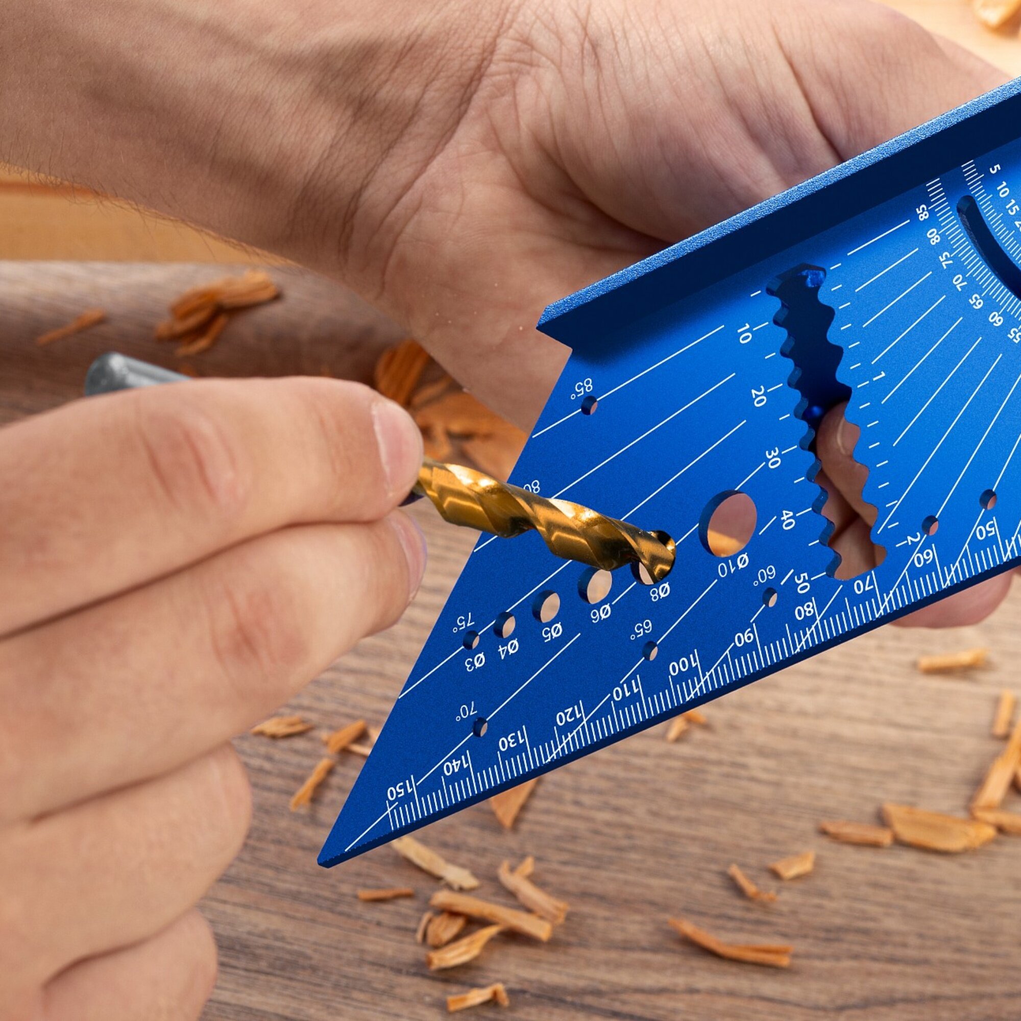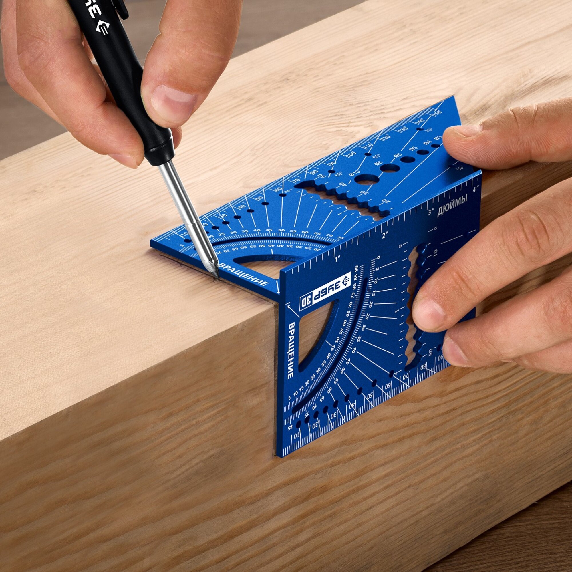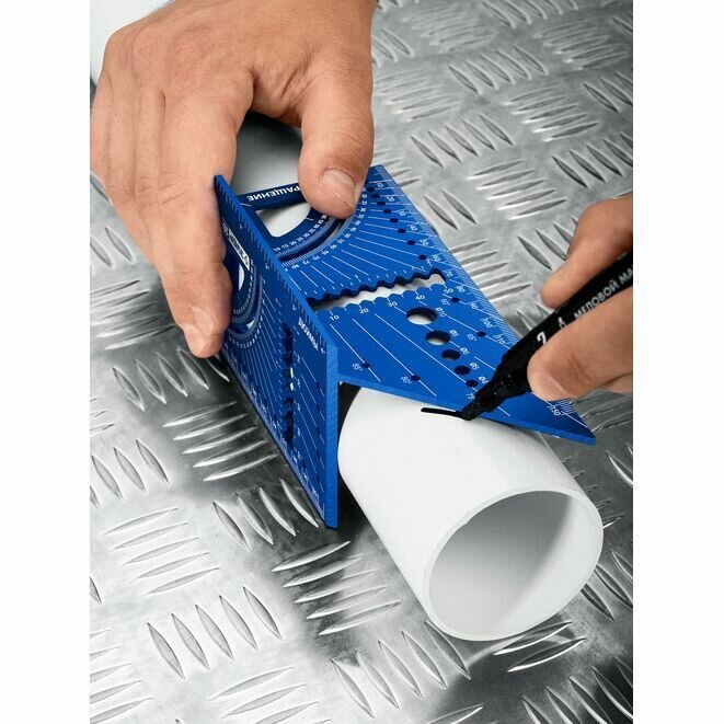 Профессиональный универсальный кровельный угольник — это инструмент для точной разметки объёмных конструкций, таких как трубы, балки, направляющие. Имеет широкую область применения: разметка под углом 90 градусов, разметка под углом 45 градусов, разметка труб, рейсмус, транспортир, линейная разметка, определение размера сверла.