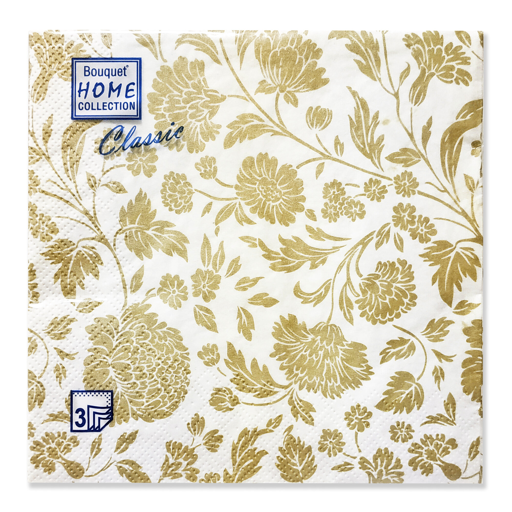Салфетки одноразовые бумажные трехслойные 33х33 см анжелика золото 20 шт Bouquet (размер: 33 x 33 см)