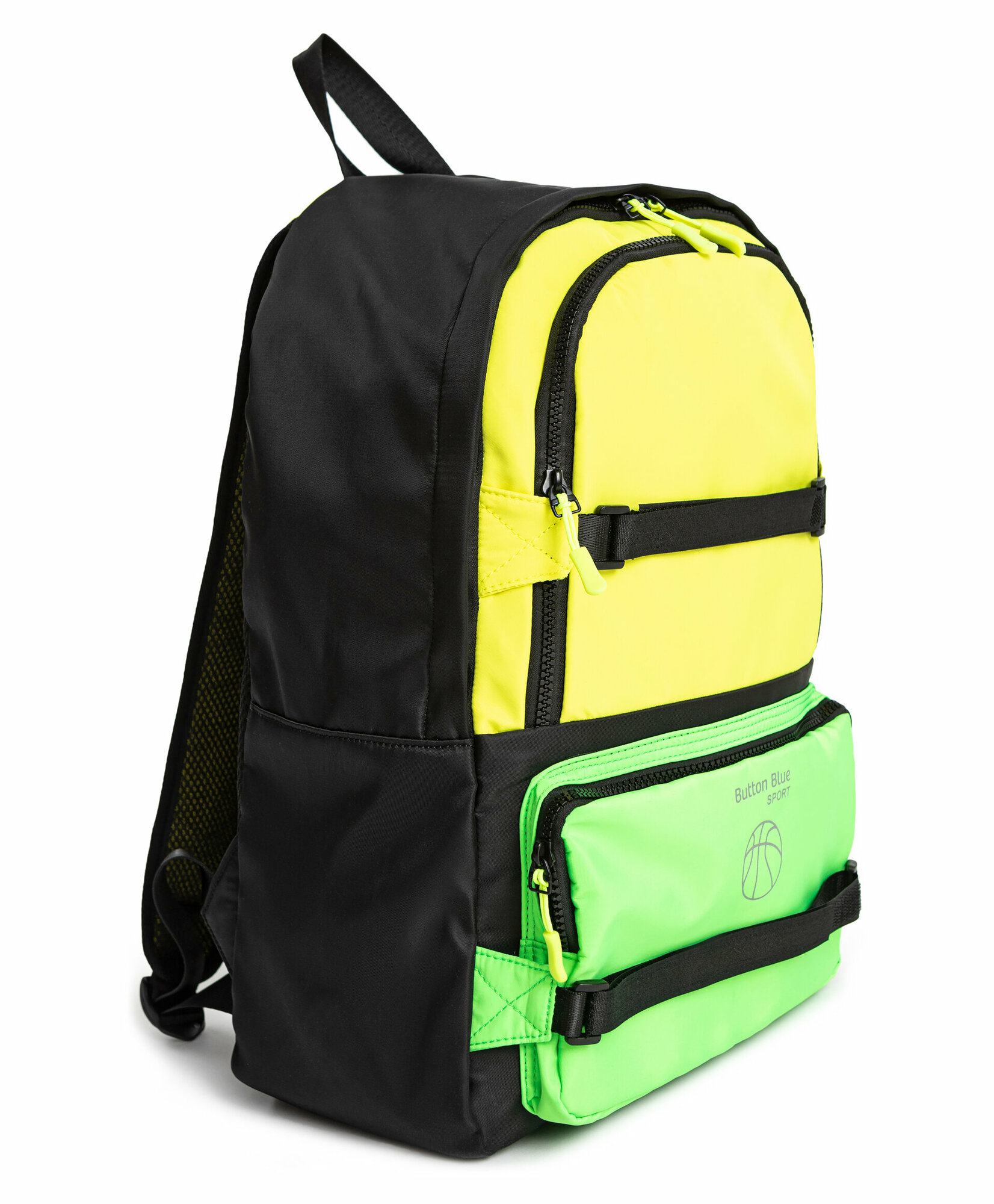 Черный рюкзак с яркими вставками. Идеальный выбор для активных и привыкших быть в центре внимания. Сочетание чёрного с кислотным жёлтым и салатовым делает образ ярче и сочнее. Рюкзак оснащен прочной молнией и широкими лямками, которые не натирают плечи. Вместительный внутренний отсек позволяет удобно разместить все необходимые вещи, а укрепленная спинка обеспечивает комфорт и поддержку при ношении. Рюкзак изготовлен из качественных материалов - верх и отделочная ткань выполнены из 100% полиэстера, как и подкладка.