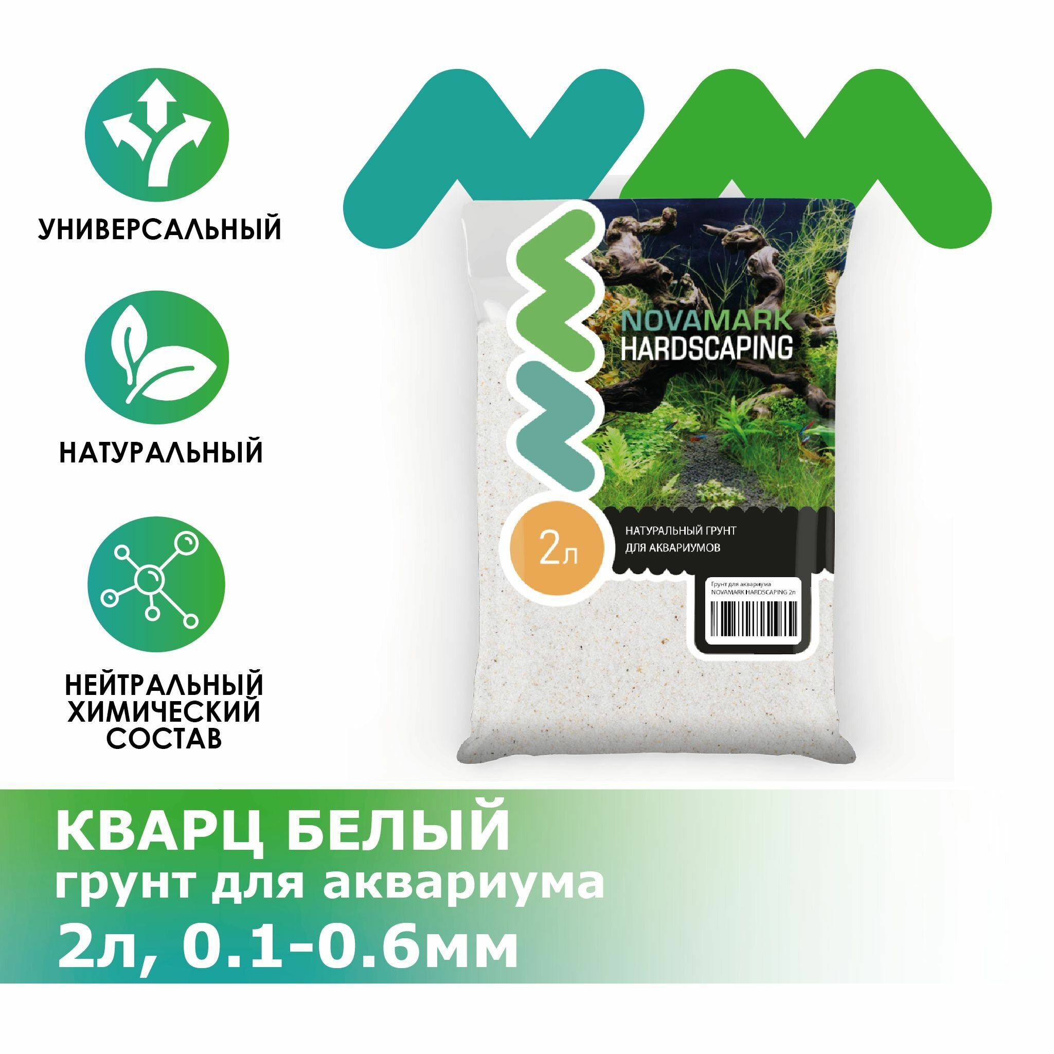 | Наименование модели | Грунт для аквариума NOVAMARK HARDSCAPING Кварц белый 0,1-0,6 мм (River Quartz), 2л |