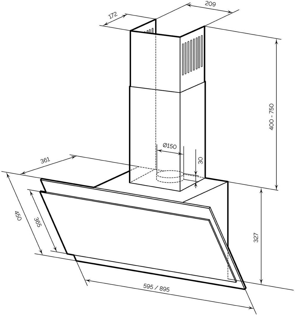 Наклонная кухонная вытяжка LEX FURIA 600 IVORY