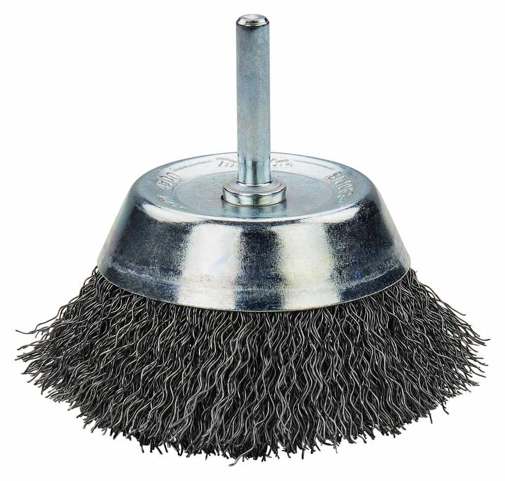 Чашечная металлическая проволочная щётка (диаметр 75 мм, хвостовик 6 мм, толщина проволоки 0.3 мм) применяется для зачистки металлических поверхностей и удаления ржавчины на большой площади. Щетка выполнена из высококачественных материалов и имеет длительный срок службы.