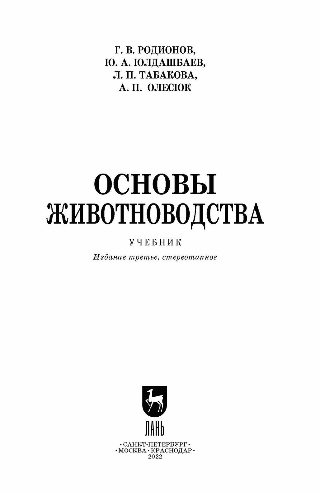 Основы животноводства. Учебник для СПО (Г. В. Родионов); Издательство ЛАНЬ, 2021