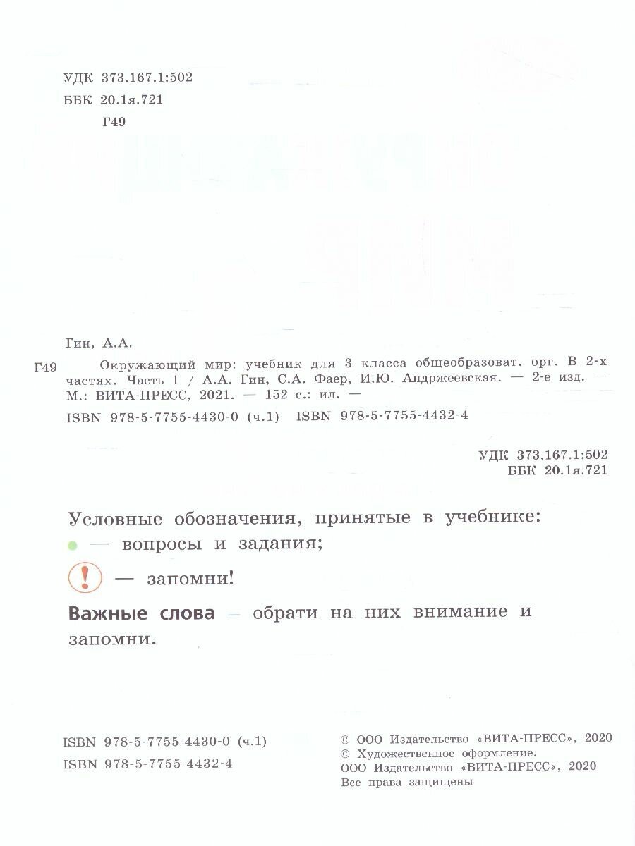 Окружающий мир. 3 класс. Часть 1 (А. А. Гин); ВИТА-ПРЕСС, 2020