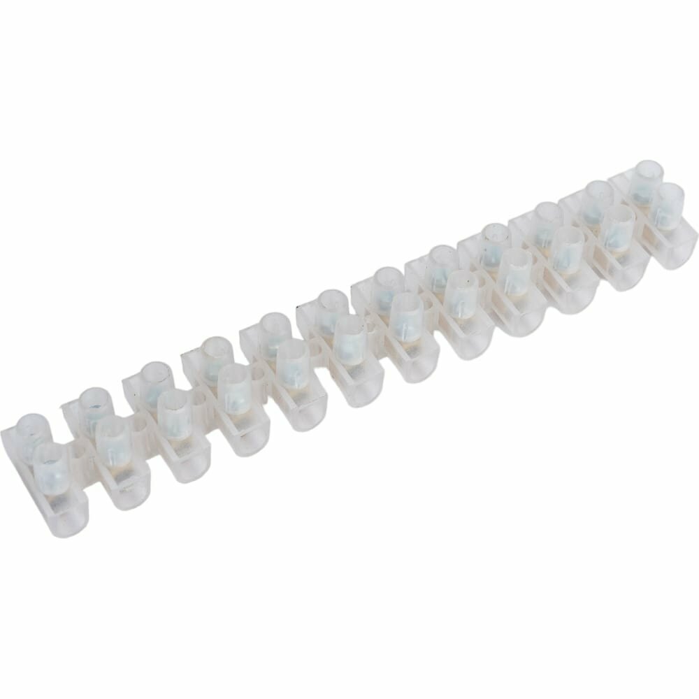 Колодка клеммная (зажим винтовой) ЗВИ-10 полипропилен 1,5-6 мм? 12 пар белая применяется в электрических цепях с номинальным напряжением до 400В и частотой 50Гц. Распространено применение в распаячных коробках для подключения люстр и других световых приборов.Колодка защищена диэлектрическим материалом, стойким к высоким температурам (от -25 до +100 градусов Цельсия). Изоляционный каркас выполнен из полиэтилена и полипропилена. Токоведущие части - из латуни. Винты стальные оцинкованные.