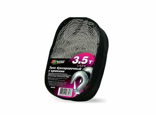 Трос буксировочный RUNWAY с крюками 3,5 т в сумке .Предназначен для буксировки транспортных средств весом до 3.5 тонн.Соответствует ПДД.Длина 4 метра.Правила эксплуатации: не допускайте провисания троса, рывков, попадание троса под колеса!