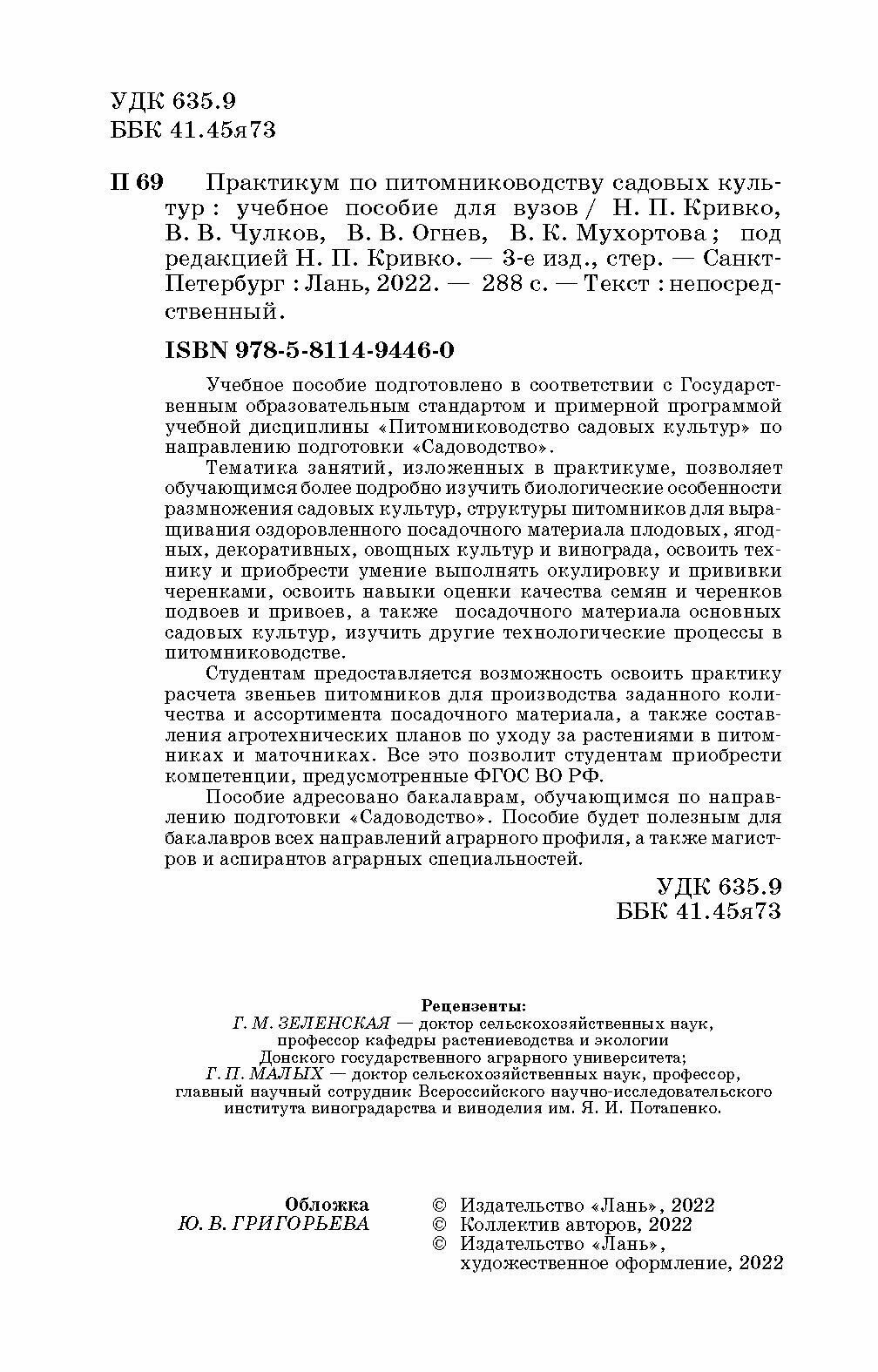 Практикум по питомниководству садовых культур (Кривко Н. П., Чулков В. В. и др.); Лань, 2022