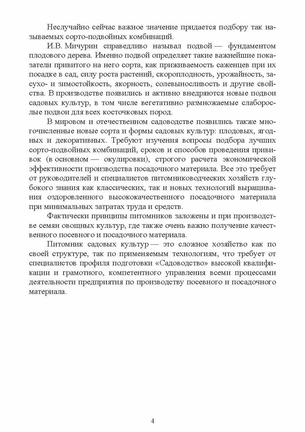 Учебное пособие подготовлено в соответствии с Государственным образовательным стандартом и примерной программой учебной дисциплины «Питомниководство садовых культур» по направлению подготовки «Садоводство». Тематика занятий, изложенных в практикуме, позволяет обучающимся более подробно изучить биологические особенности размножения садовых культур, структуры питомников для выращивания оздоровленного посадочного материала плодовых, ягодных, декоративных, овощных культур и винограда, освоить технику и приобрести умение выполнять окулировку и прививки черенками, освоить навыки оценки качества семян и черенков подвоев и привоев, а также посадочного материала основных садовых культур, изучить другие технологические процессы в питомниководстве. Студентам предоставляется возможность освоить практику расчета звеньев питомников для производства заданного количества и ассортимента посадочного материала, а также составления агротехнических планов по уходу за растениями в питомниках и в маточниках. Все это позволит студентам приобрести компетенции, предусмотренные ФГОС ВО РФ. Пособие адресовано бакалаврам, обучающимся по направлению подготовки «Садоводство». Пособие будет полезным для бакалавров всех направлений аграрного профиля, а также магистров и аспирантов аграрных специальностей.