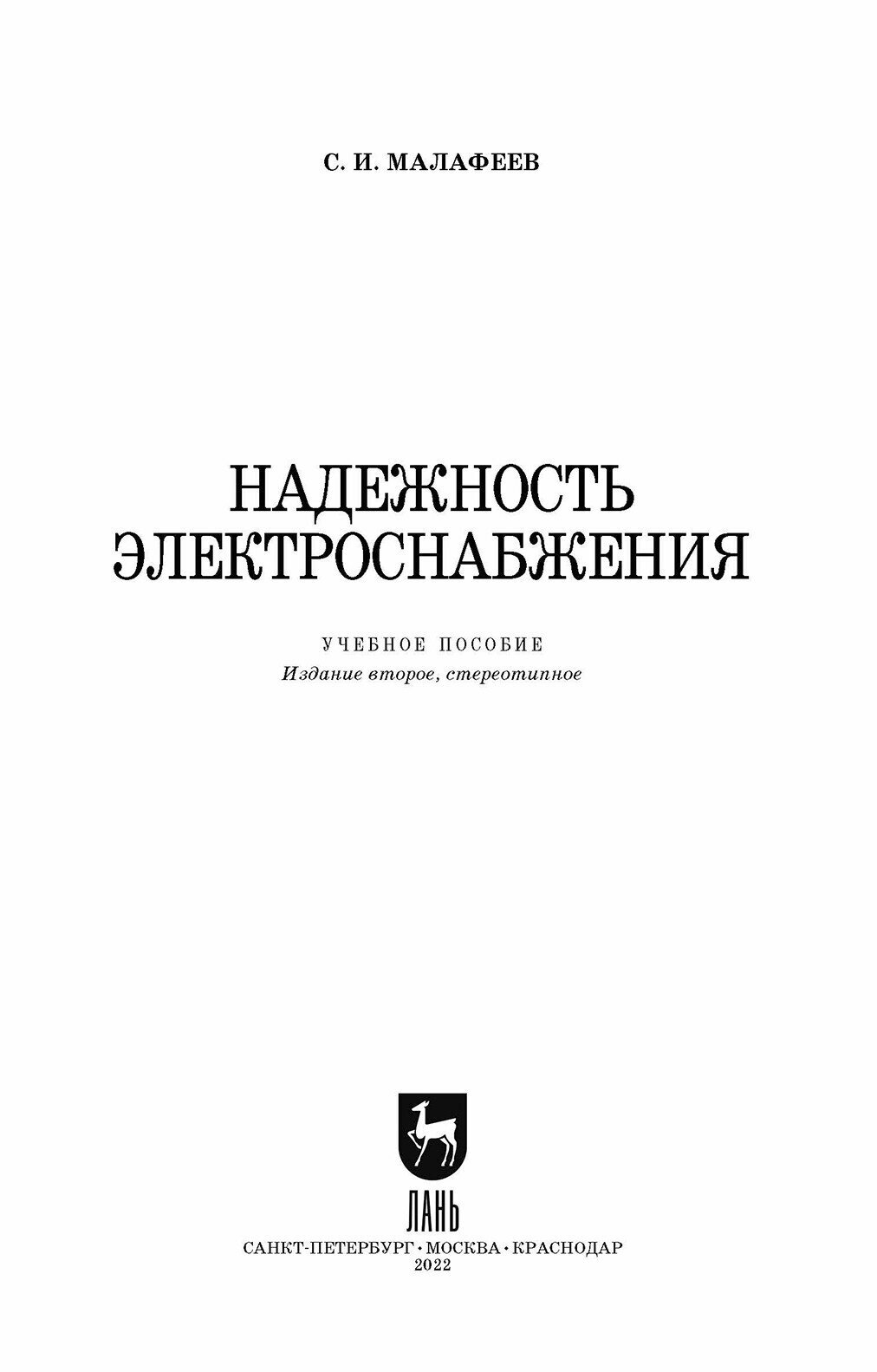 Надежность электроснабжения (С. И. Малафеев); Издательство ЛАНЬ, 2025