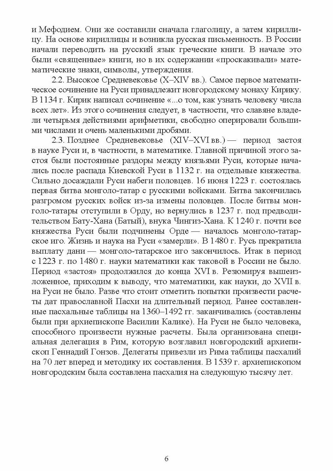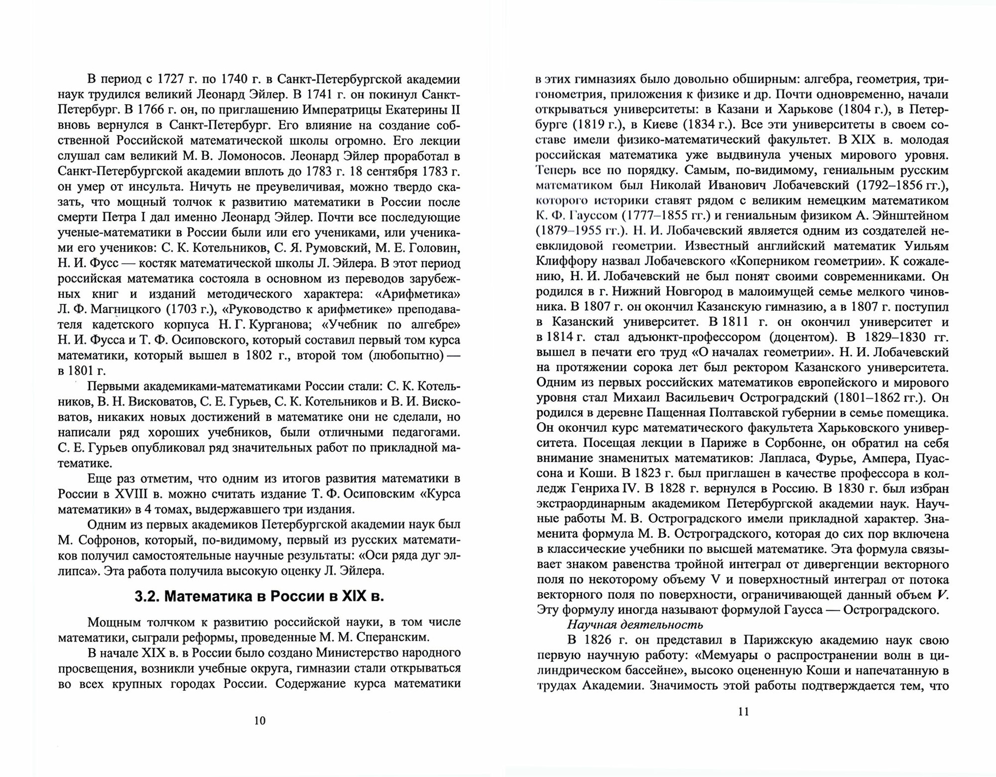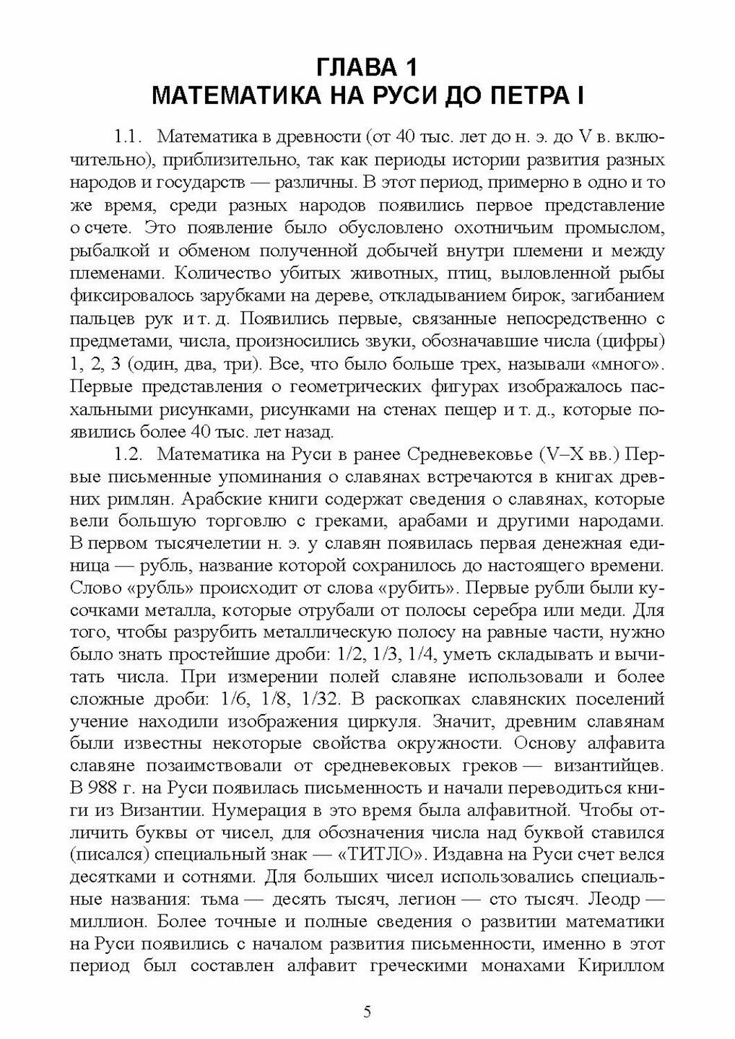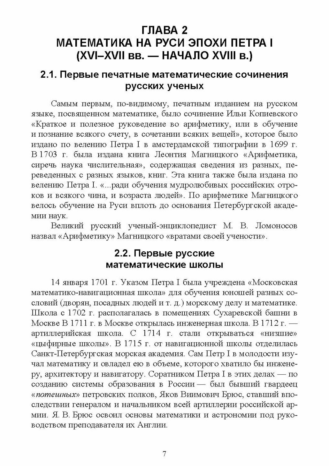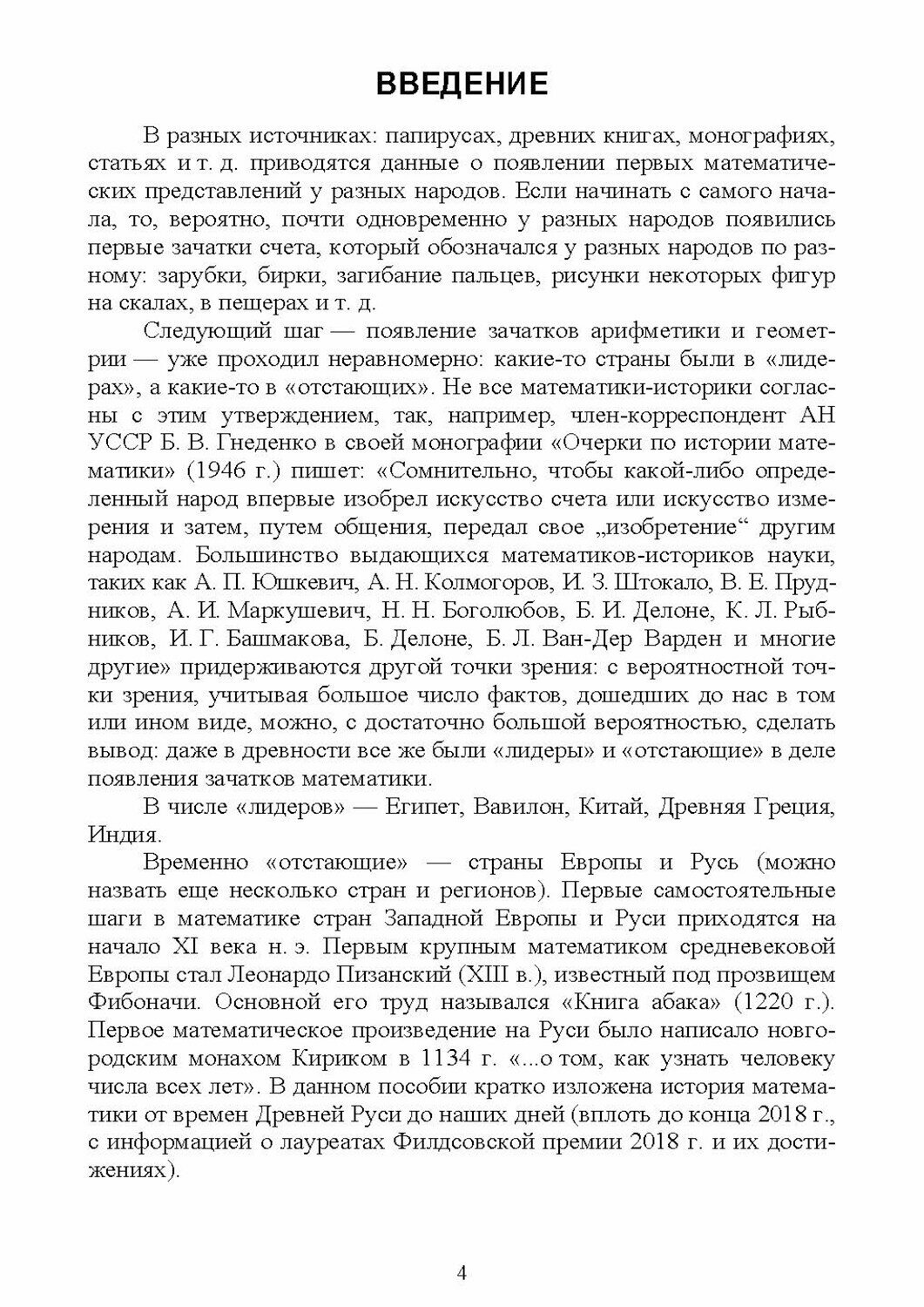 В данном пособии содержится обширный исторический материал, посвященный возникновению развитию математики от древнейших времен до наших дней, приведены все основные достижения в математике в разных странах мира, даны краткие сведения о великих математиках, сделавших выдающиеся открытия как в математике, так и в ее приложениях. Подробно изложена история становления и развития математики в Древней Руси, России до Петра Первого, в эпоху Петра Первого и в послепетровскую эпоху до наших дней. Пособие предназначено для студентов педагогических, инженерно-педагогических и классических университетов, обучающихся по специальностям «Математика», «Прикладная математика», «Теоретическая физика», а также студентов некоторых технических специальностей, а также школьникам 8-11 классов.