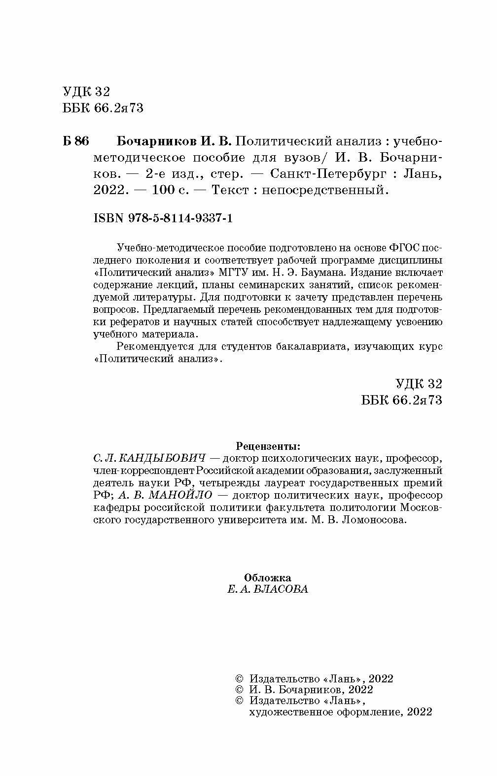 Книга: Политический анализ (И. В. Бочарников); Издательство ЛАНЬ, 2022