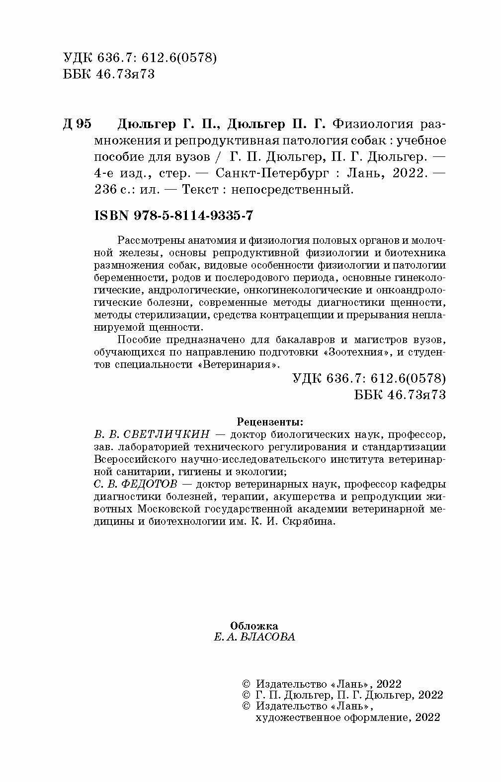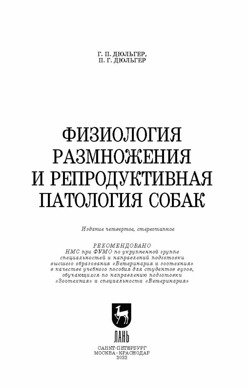 Физиология размножения и репродуктивная патология собак (Дюльгер Г. П., Дюльгер П. Г.); Лань, 2022