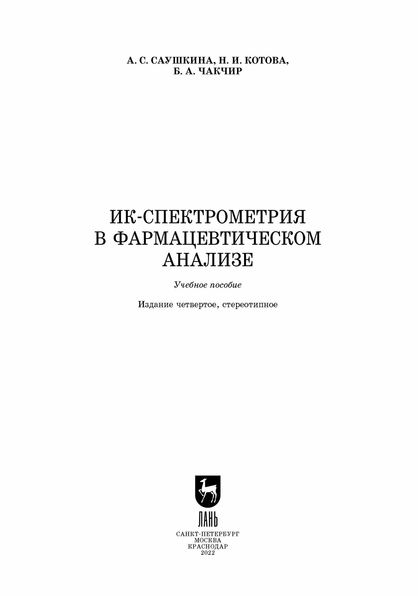 ИК-спектрометрия в фармацевтическом анализе (А. С. Саушкина); Издательство ЛАНЬ, 2022
