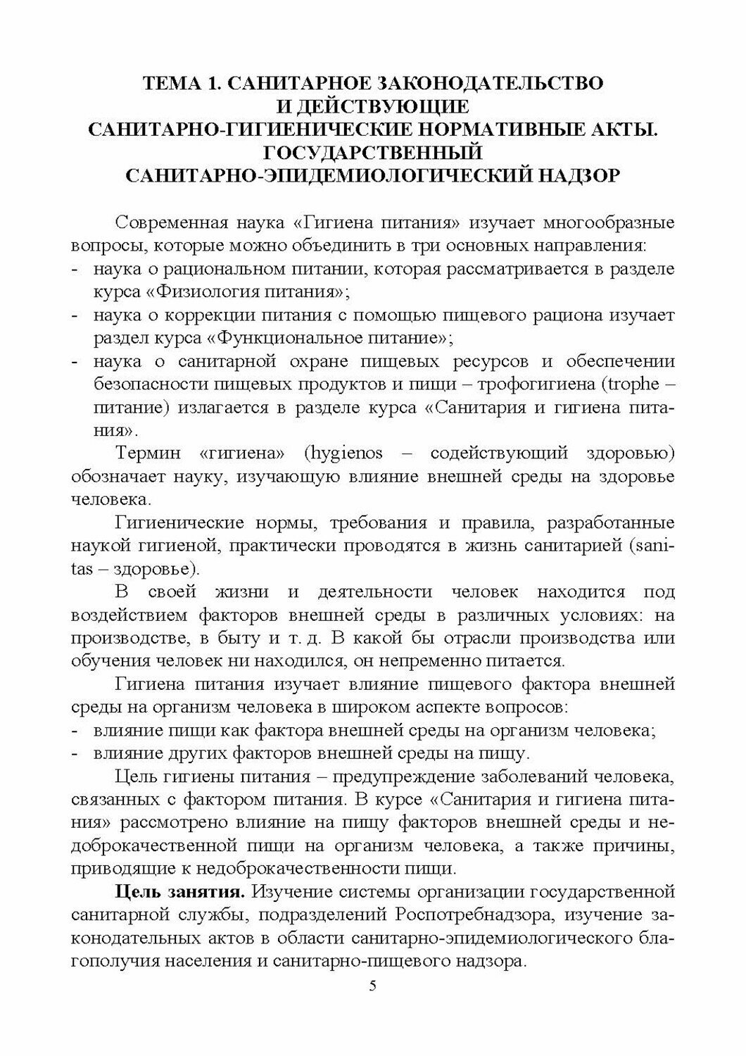 Рассмотрены основные вопросы изучаемой дисциплины: санитарно-гигиеническое законодательство, понятие о производственном контроле, гигиенические требования к проектированию предприятий питания, оборудованию и посуде на предприятии питания, профилактические мероприятия по предупреждению пищевых заболеваний, основы экспертизы пищевых продуктов. Приведена тематика практических занятий, их содержание и указания к выполнению, перечень вопросов для самостоятельного изучения курса, тематика рефератов. В приложении представлены сроки годности и условия хранения скоропортящихся продуктов. Учебное пособие предназначено для подготовки бакалавров по направлению «Технология продукции и организация общественного питания», изучающих дисциплину «Гигиена питания». Может быть рекомендовано также для подготовки бакалавров по направлению «Сервис» при изучении дисциплины «Санитария и гигиена питания».