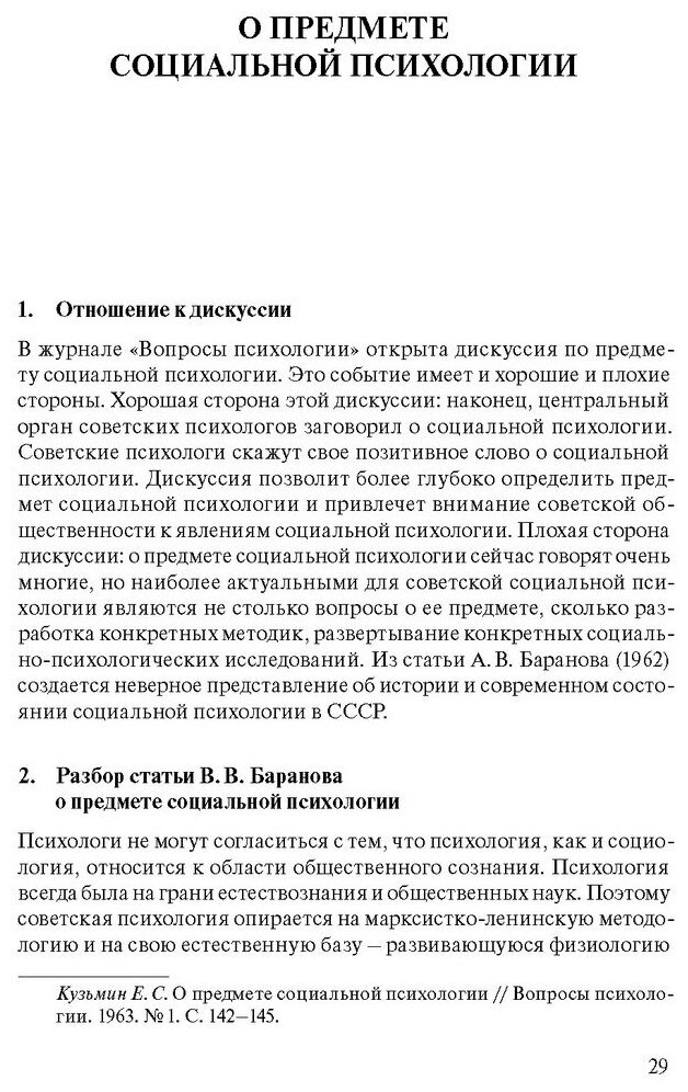 Книга посвящена 100-летию со дня рождения Евгения Сергеевича Кузьмина, одного из основателей социальной психологии в СССР. Вклад Е. С. Кузьмина в науку состоит в разработке методологических принципов социальной психологии, определении ее предмета, законов и основных методов исследования. Е. С. Кузьмин организовал первую в нашей стране лабораторию социальной психологии, создал первую кафедру социальной психологии в Ленинградском университете. Работы Е. С. Кузьмина не потеряли своей актуальности, они дают всестороннее представление об основах социальной психологии.